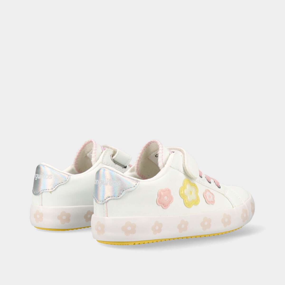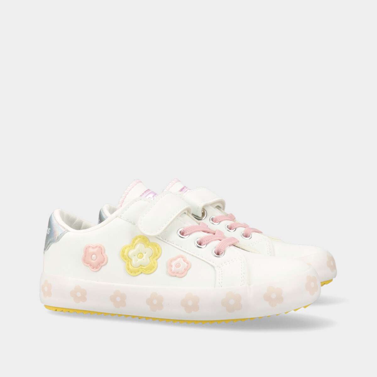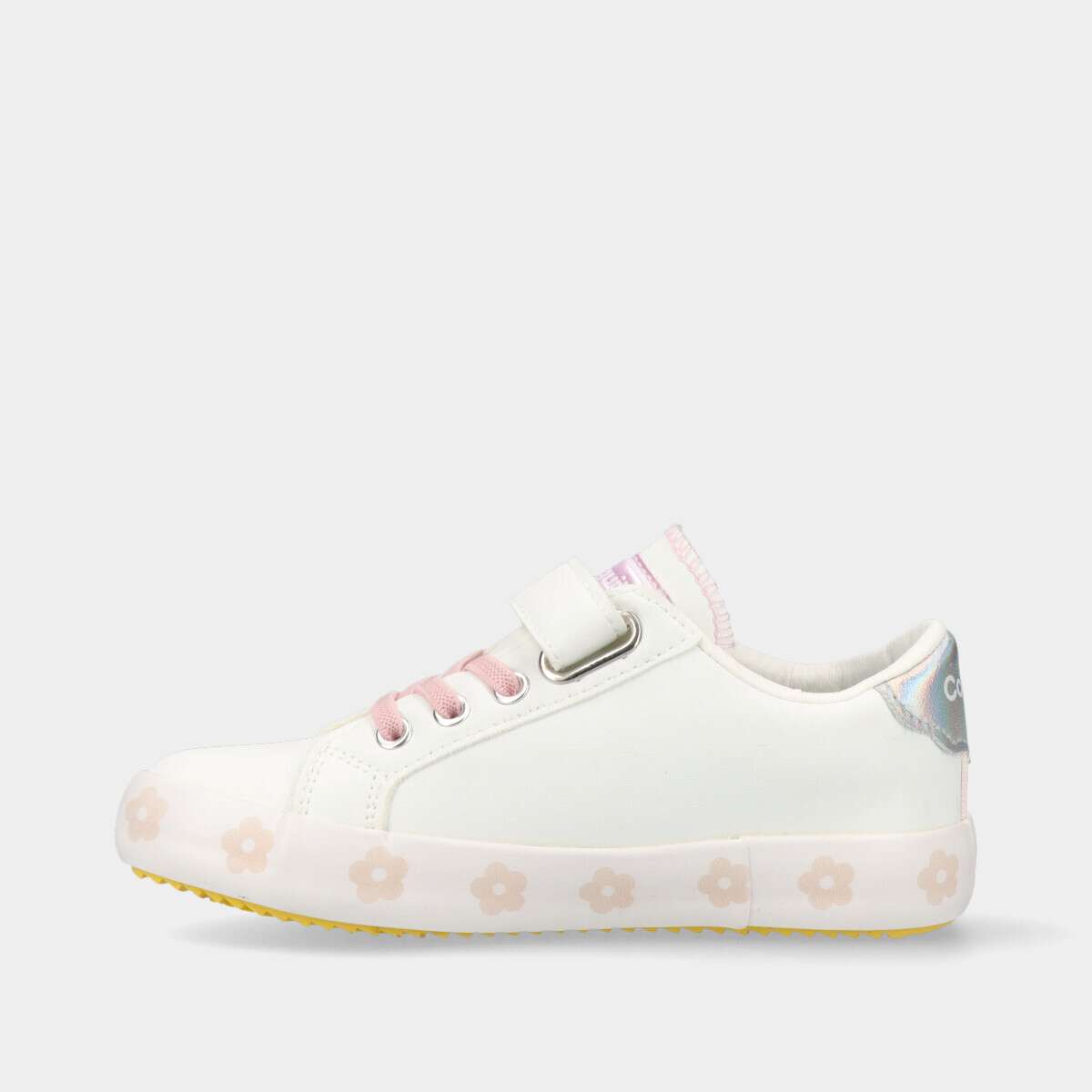 Ténis brancos que combinam conforto, durabilidade e estilo. Com um design elegante, flores coloridas a detalhe holográfico, são ideais para o dia a dia. O velcro e os cordões elásticos garantem um ajuste seguro, tornando-os perfeitos para qualquer ocasião.