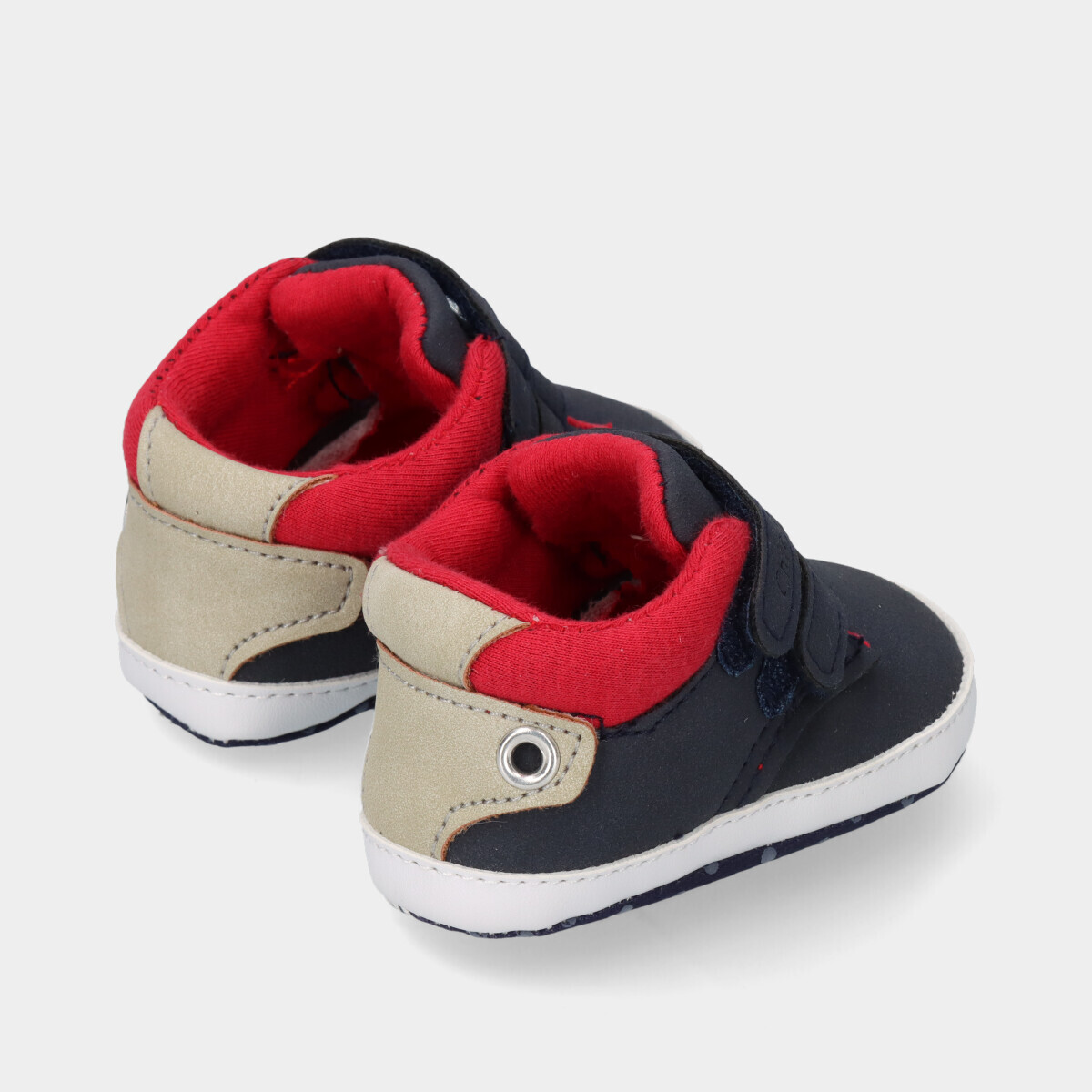 Com um design moderno e cores vibrantes, estas sapatilhas em azul marinho e vermelho vão destacar o look do seu rapaz.