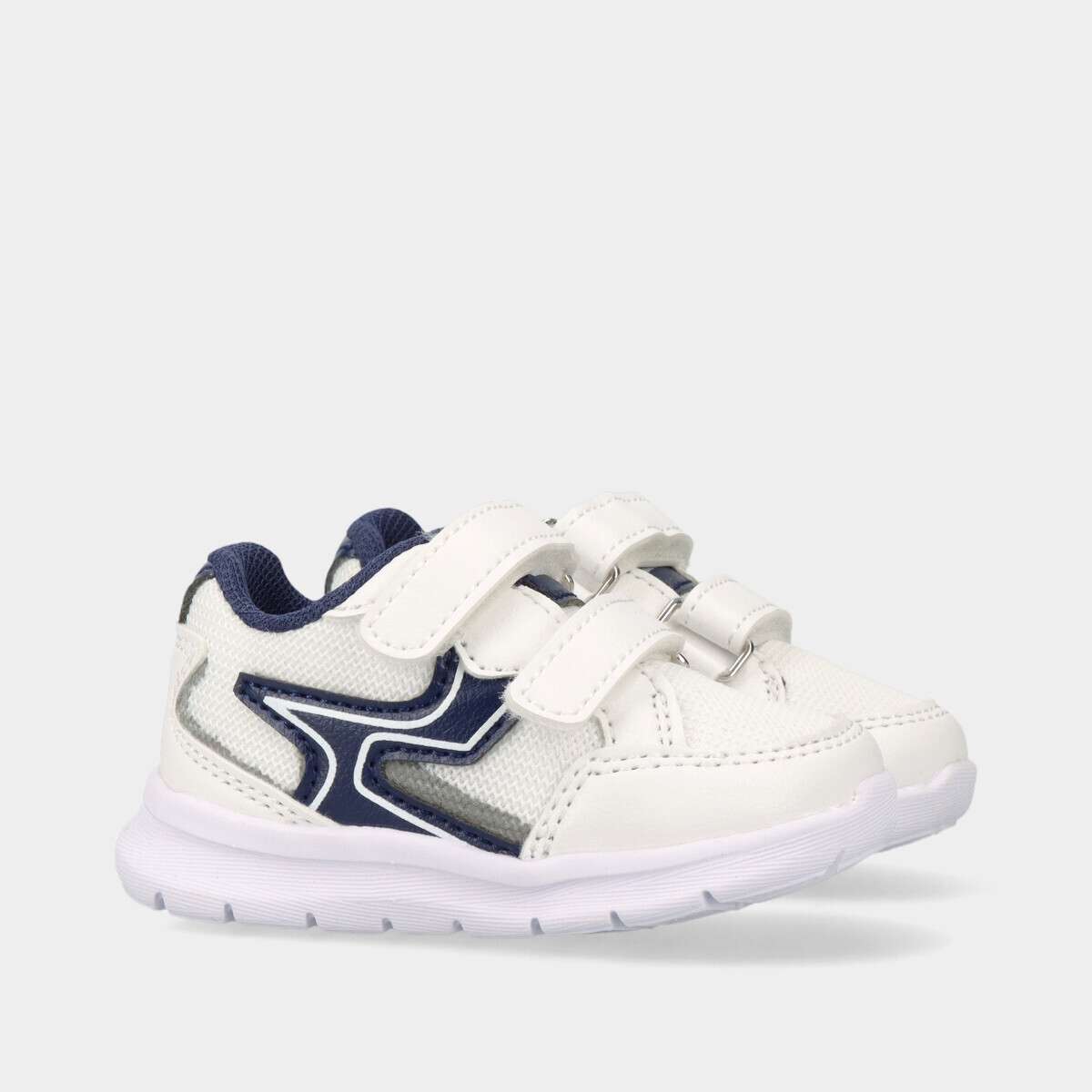 Ténis brancos com detalhes em azul para bebé menino da Chicco. Com fecho de velcro, são confortáveis, leves e fáceis de calçar. Ideais para o dia a dia.