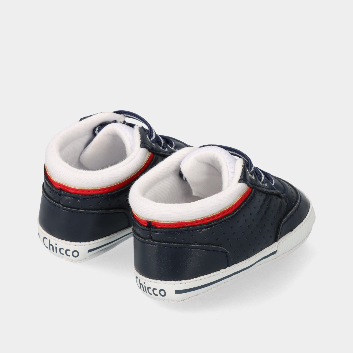 As sapatilhas Chicco Ollino na cor azul, com detalhes branco e vermelho, são uma escolha encantadora para bebés!