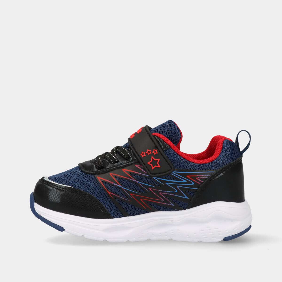 Tênis de menino na cor azul com luz na sola, velcro e cordão elástico.