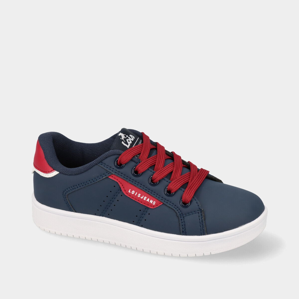 Ténis casuais para menino em azul com cores em contraste, atacadores, rebordos acolchoados e palmilha em espuma que oferece amortecimento e absorção de impacto. Modelo resistente e confortável, ideal para escola, passeios e brincadeiras. Oferta de atacador extra.