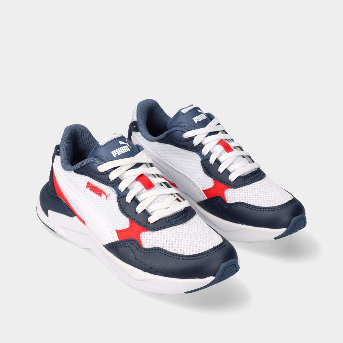A sapatilha Puma X-Ray Speed Lite PS apresenta uma junção de cores incríveis. O azul, o vermelho e o branco são cores contrastantes que dão um toque especial neste modelo.