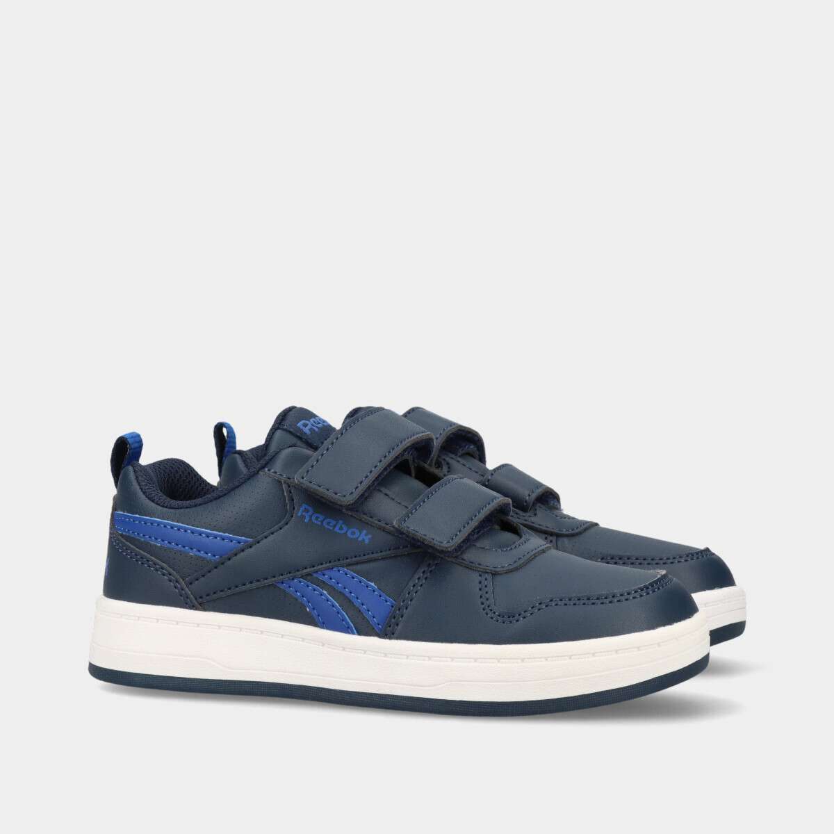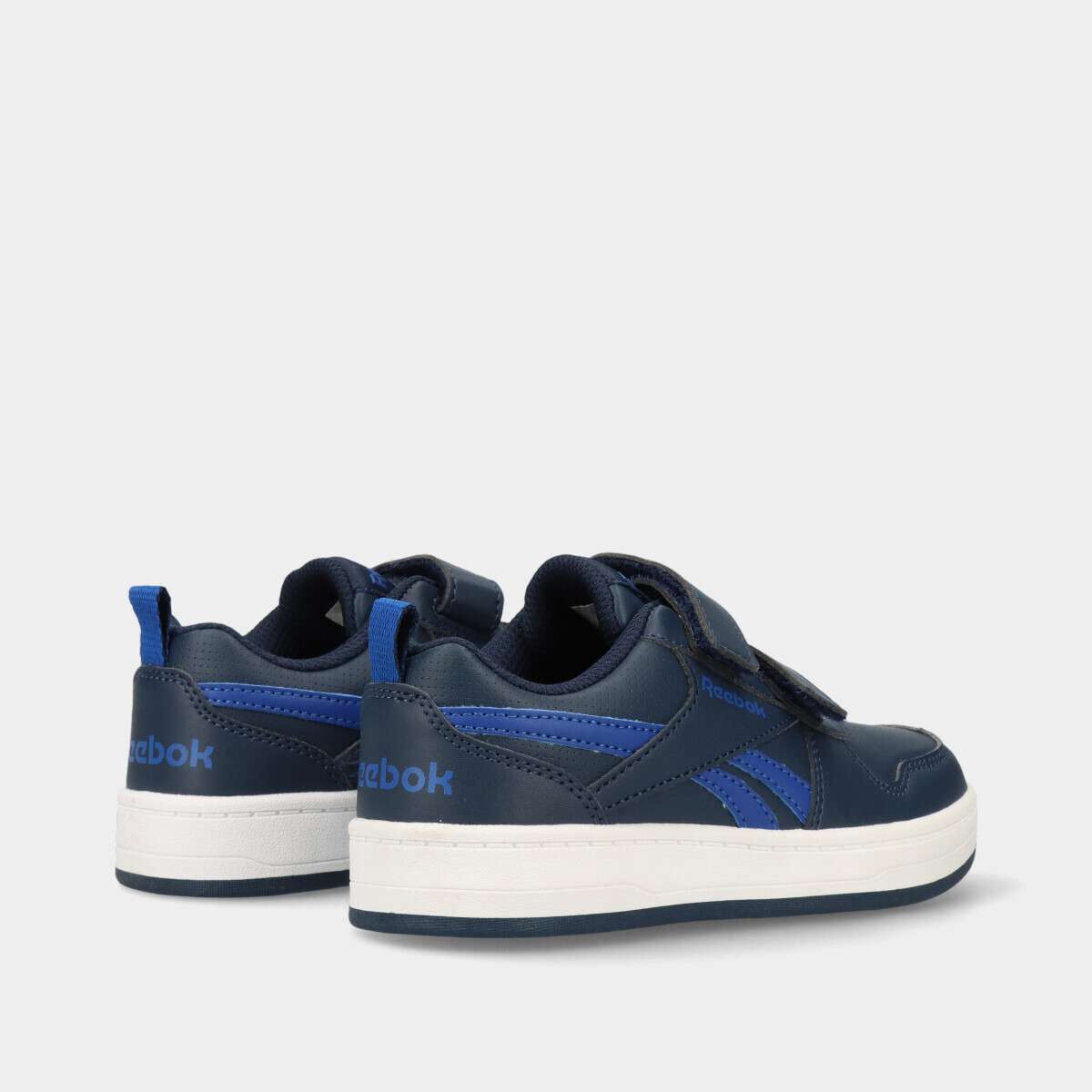Tênis infantil na cor azul de dois velcros ajustáveis.