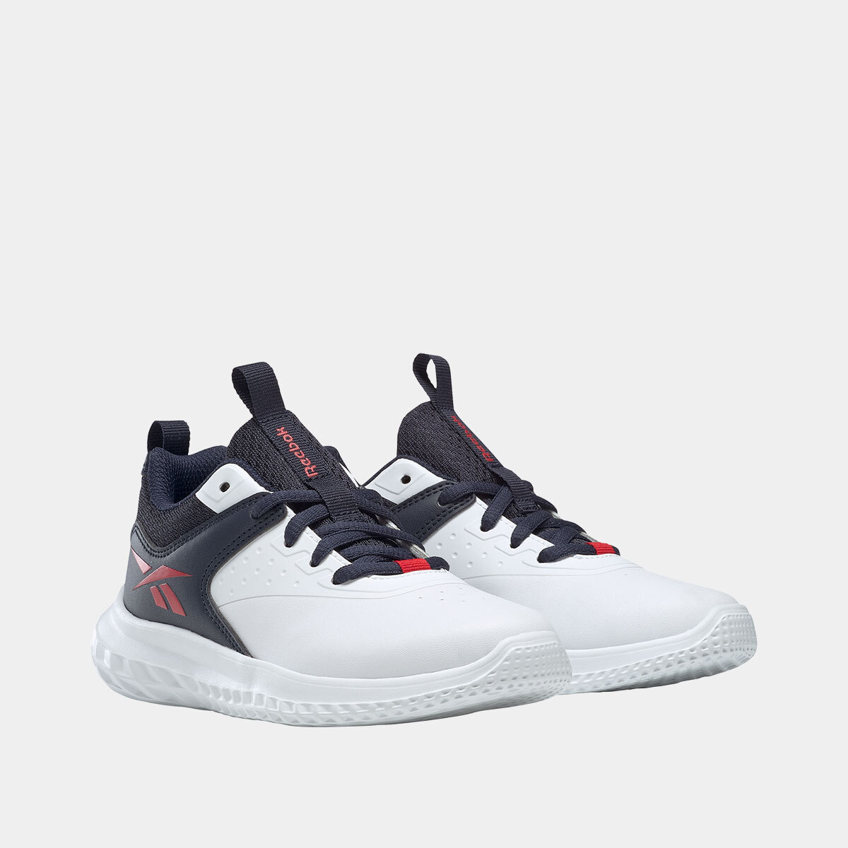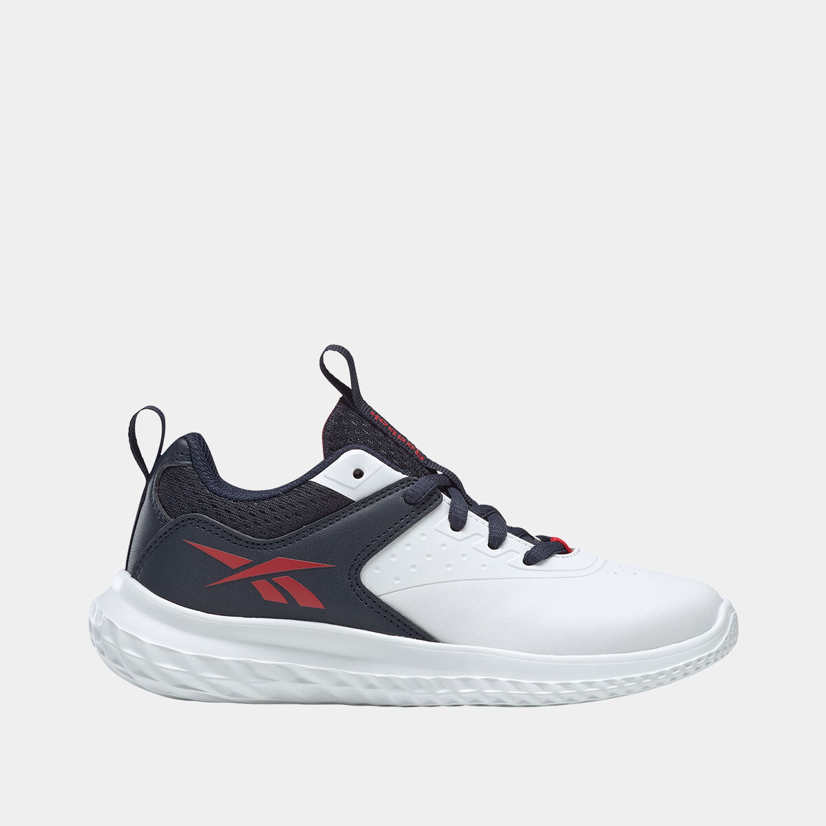Ténis Reebok Rush Runner 5 Elastic Lace para menino em azul com pormenores brancos, com atacadores elásticos que facilitam o calçar e acompanham o movimento natural do pé, indicados para uso diário, atividades escolares e momentos de lazer, ideais para quem procura ténis infantis leves, práticos e confortáveis.