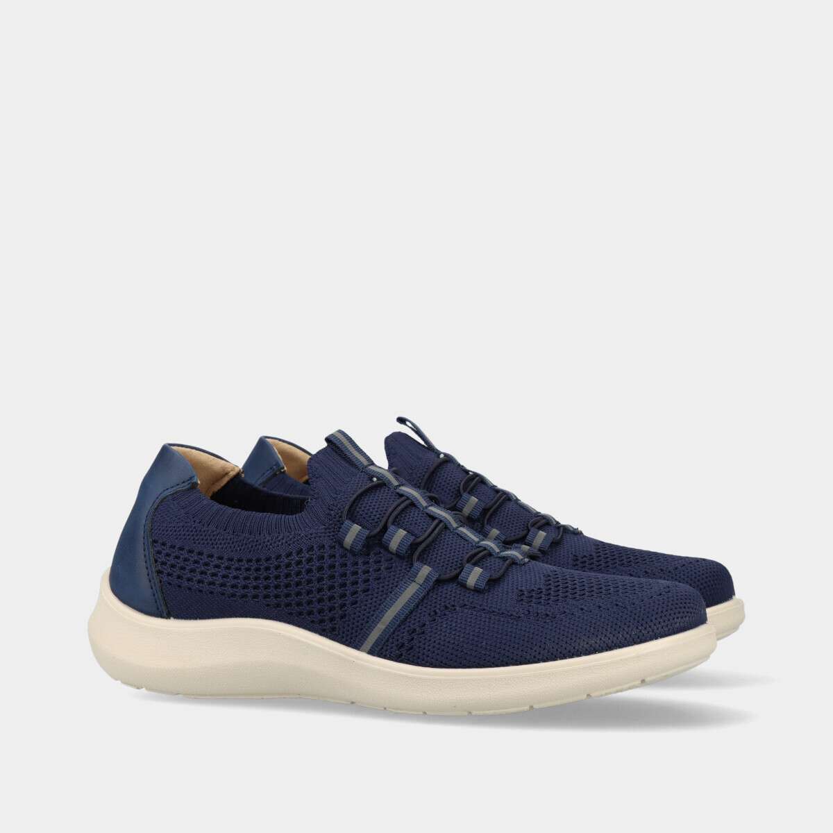 Tênis confortável na cor azul com palmilha confortável em pele, de cordão elástico.