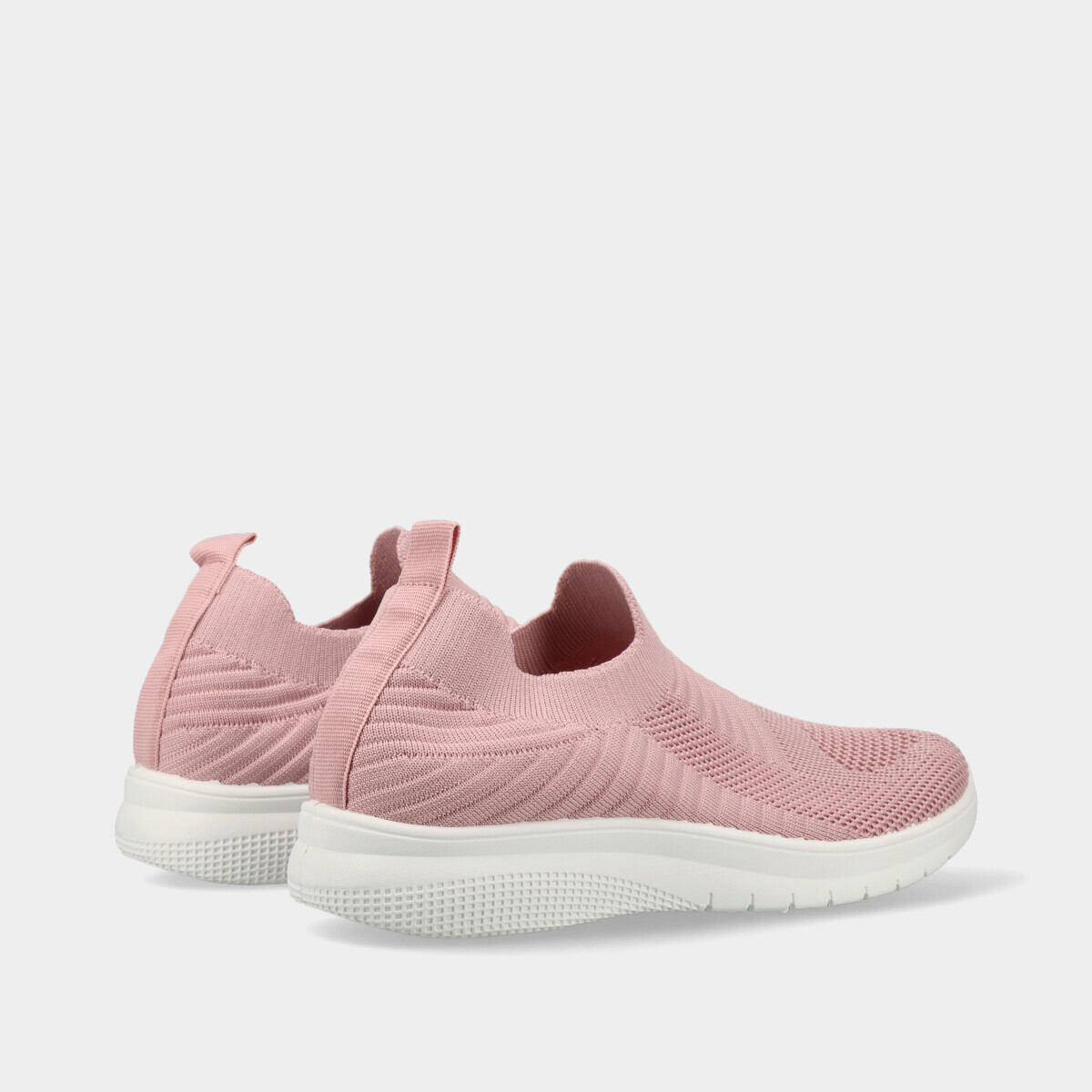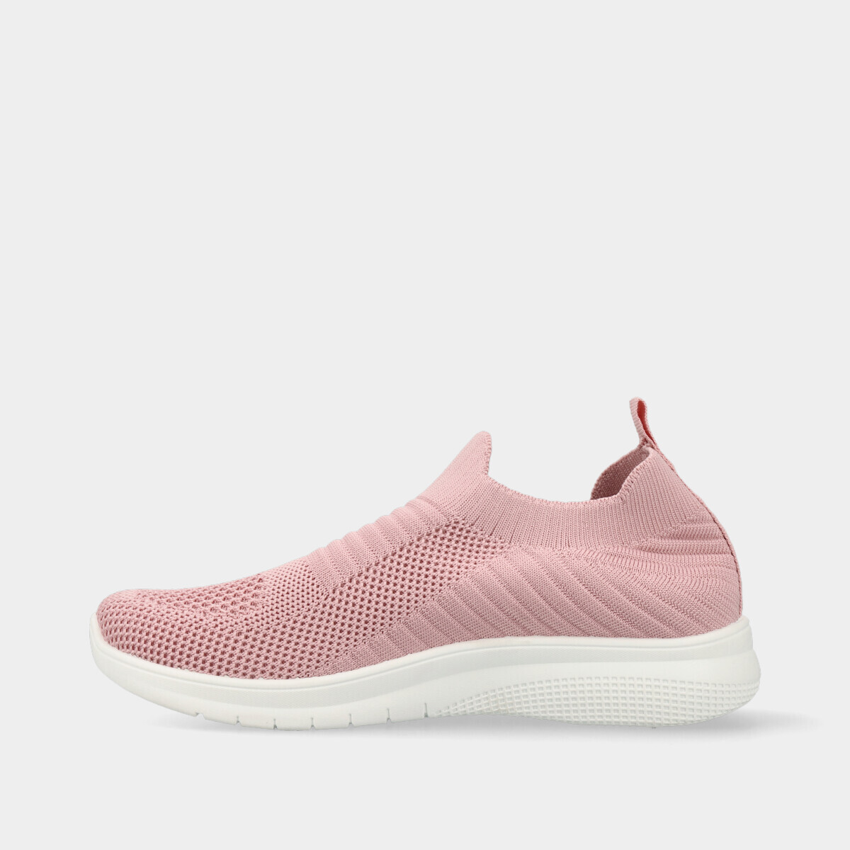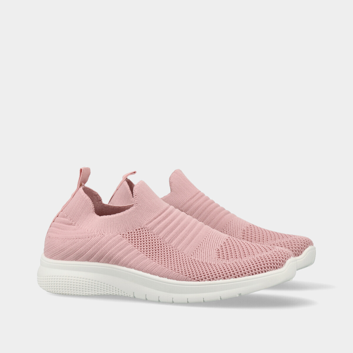 Ténis slip-on para mulher em malha respirável rosa, com palmilha removível e confortável, fácil de calçar e ideal para uso casual.