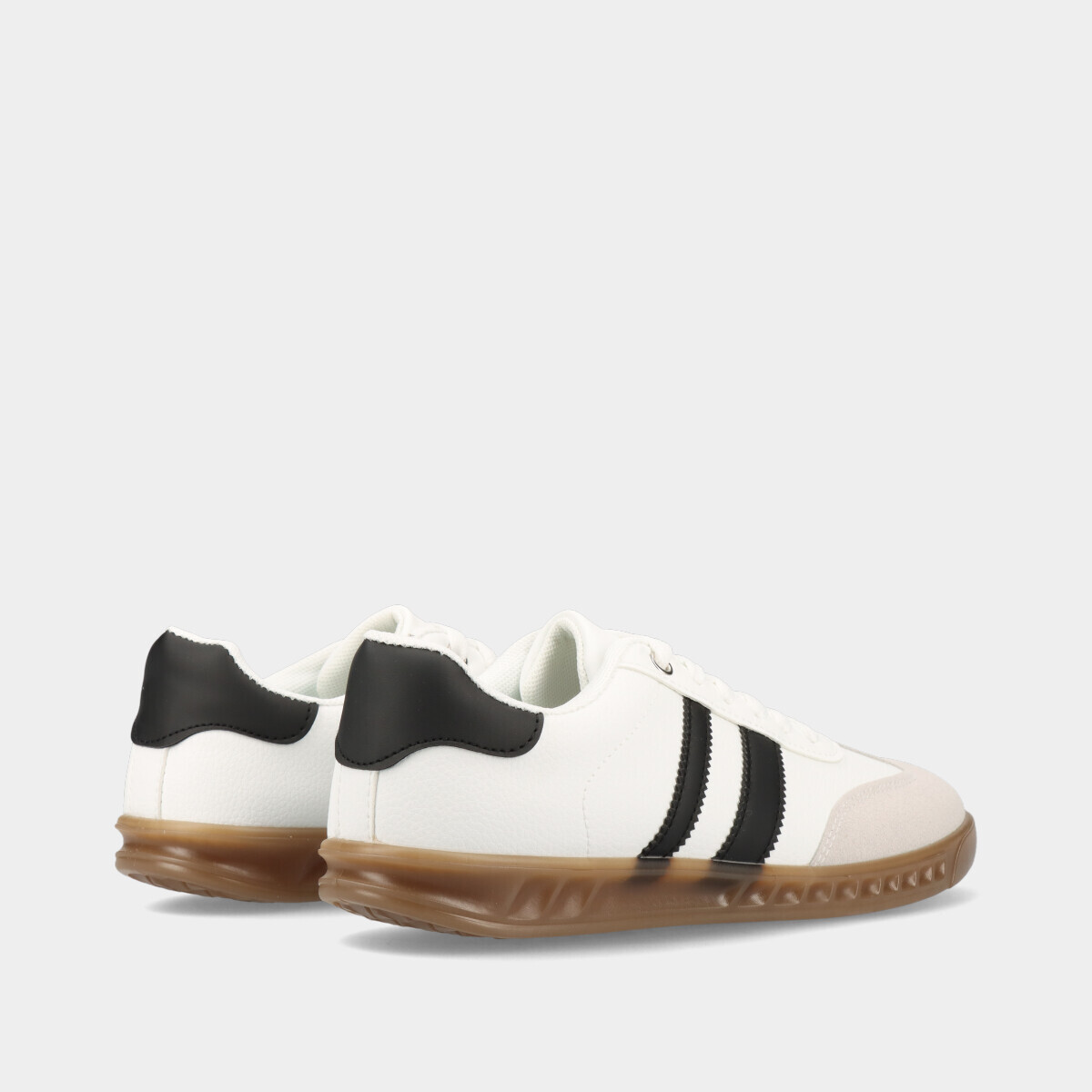 Ténis para mulher em branco com pormenores em contraste, atacadores, forro confortável e sola de borracha. Perfeitos para looks elegantes e práticos.