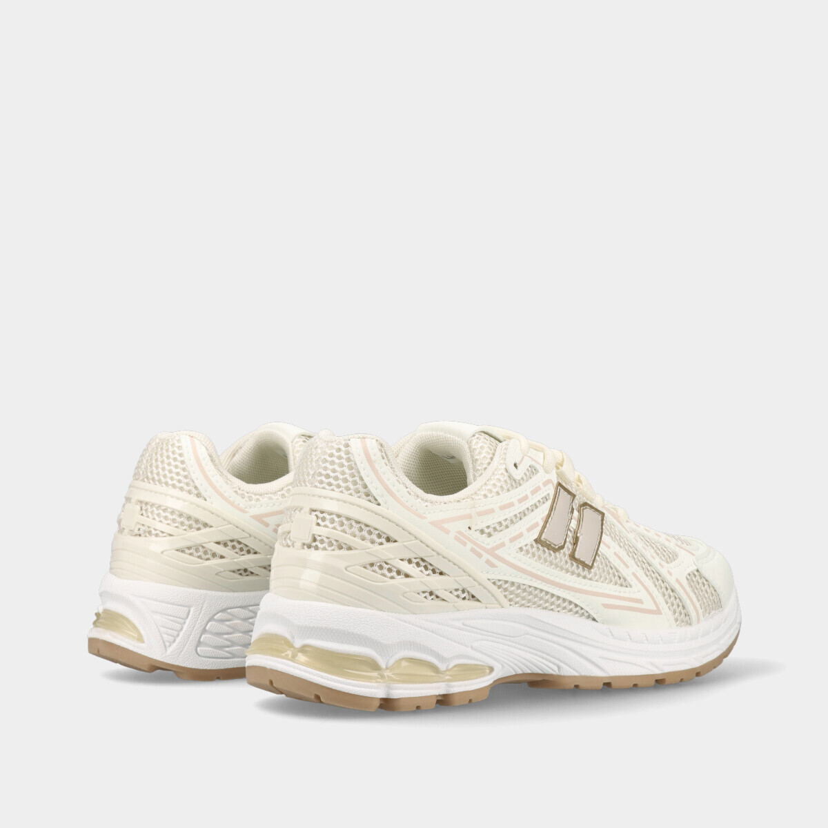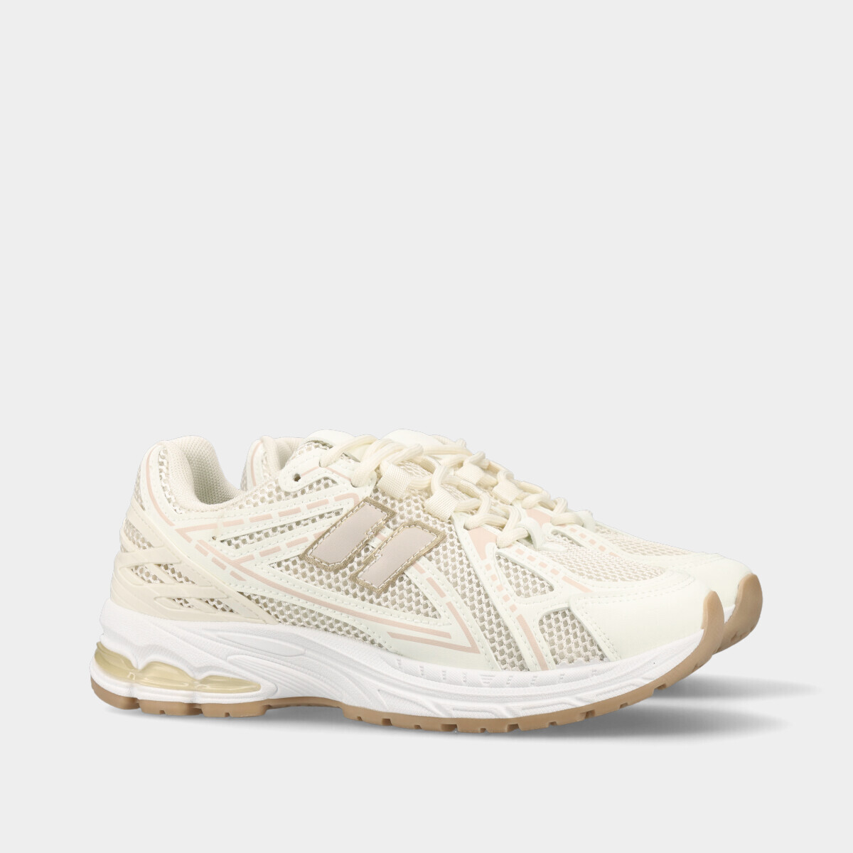Ténis desportivos para mulher em bege, com atacadores, malha respirável e palmilha removível, ideais para desporto, ginásio, caminhadas ou uso casual.