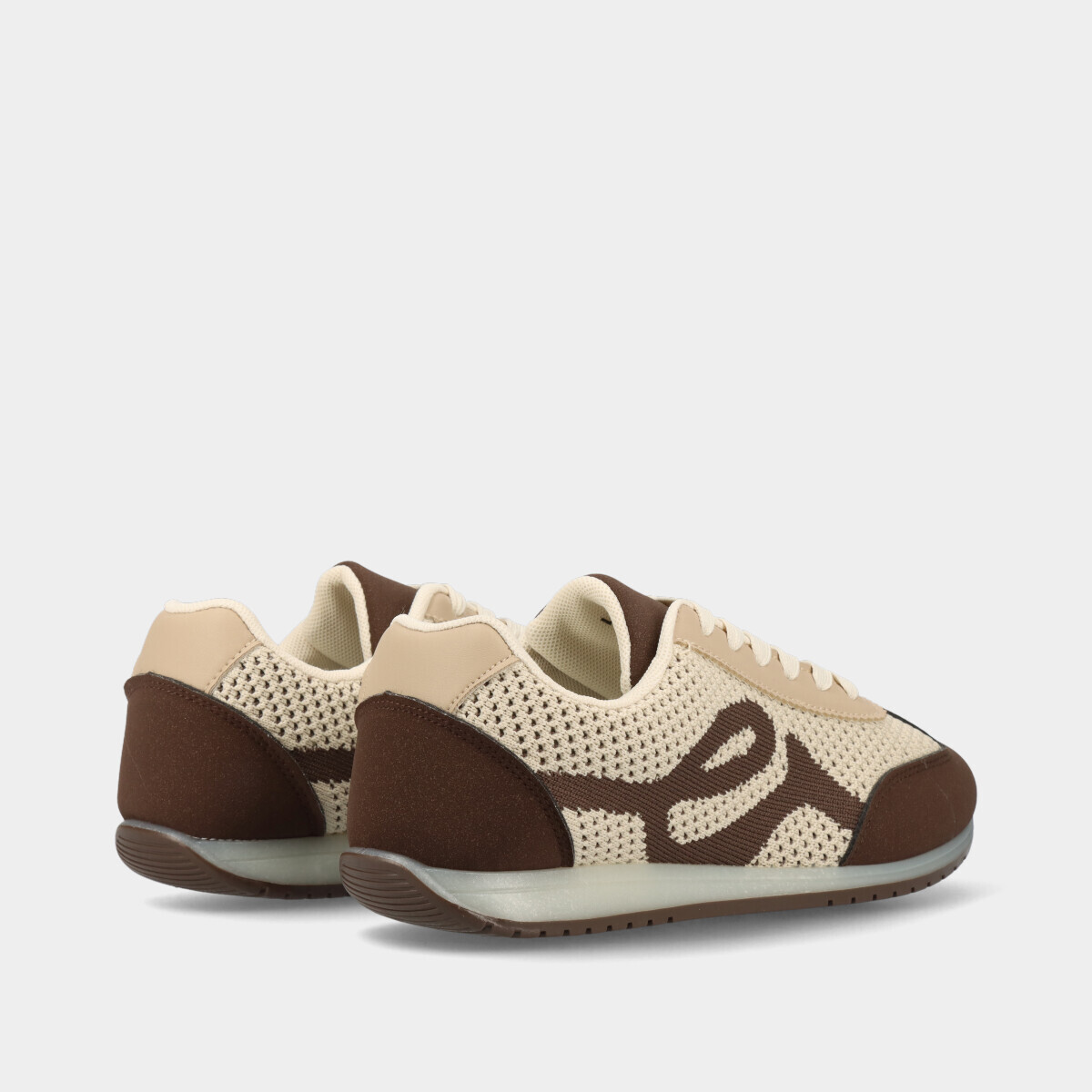 Ténis para mulher em castanho, com laterais em rede mesh, atacadores, forro confortável e sola de borracha. Perfeitos para looks elegantes e práticos.