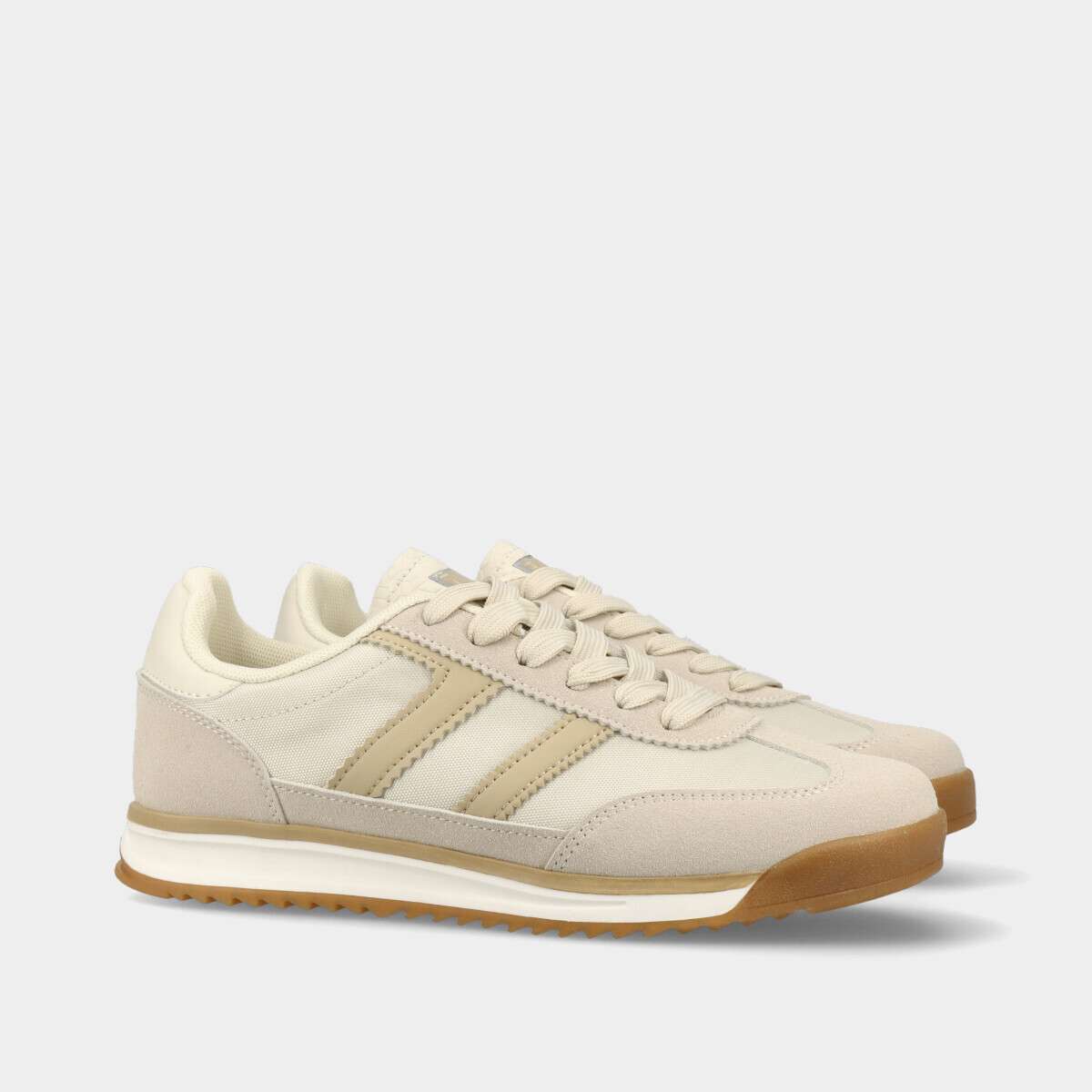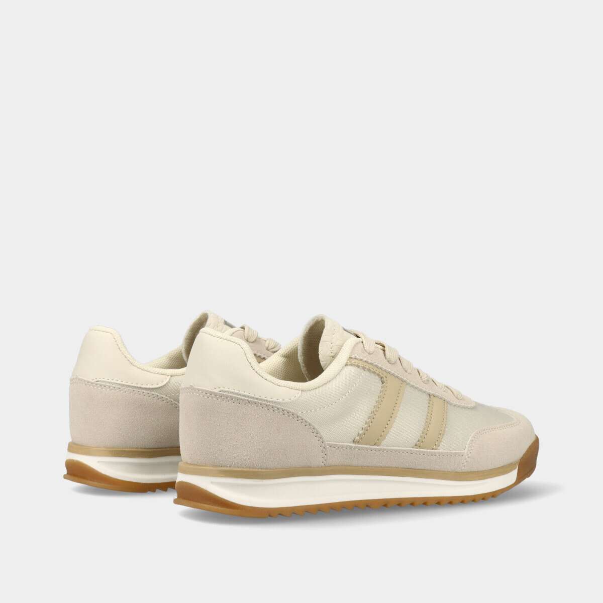 Tênis tendência na cor bege, com palmilha removível de cordão.