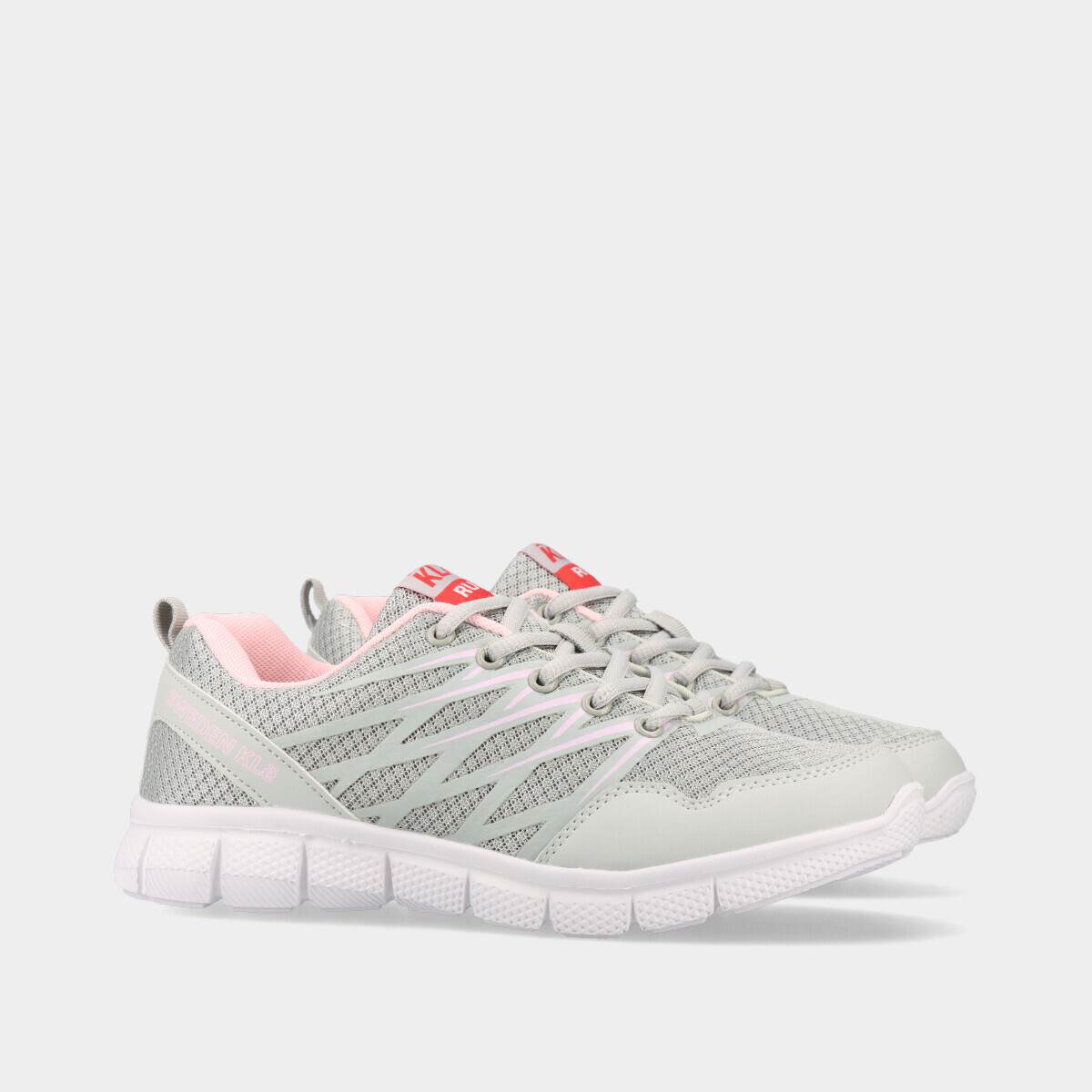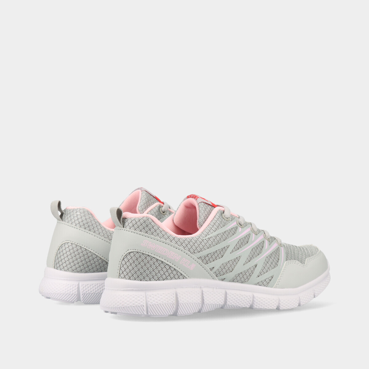 Ténis desportivos em cinza, com atacadores, malha respirável e palmilha removível, ideais para desporto, ginásio, caminhadas ou uso casual.