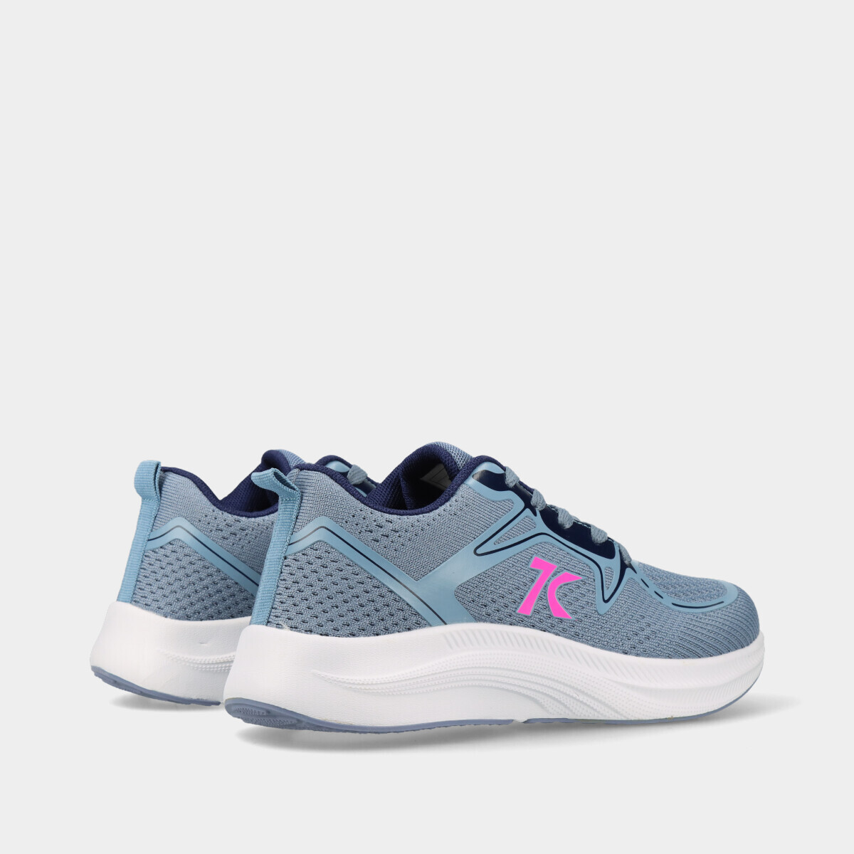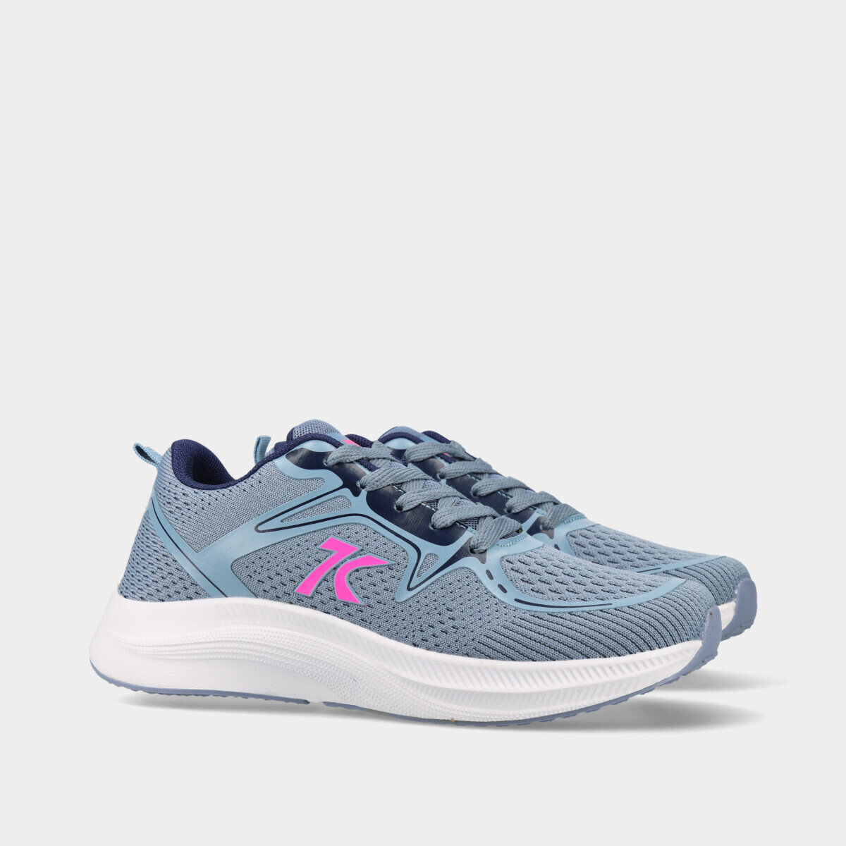 Ténis desportivos em azul, com atacadores, malha respirável e palmilha acolchoada em espuma de memória, ideais para desporto, ginásio, caminhadas ou uso casual.