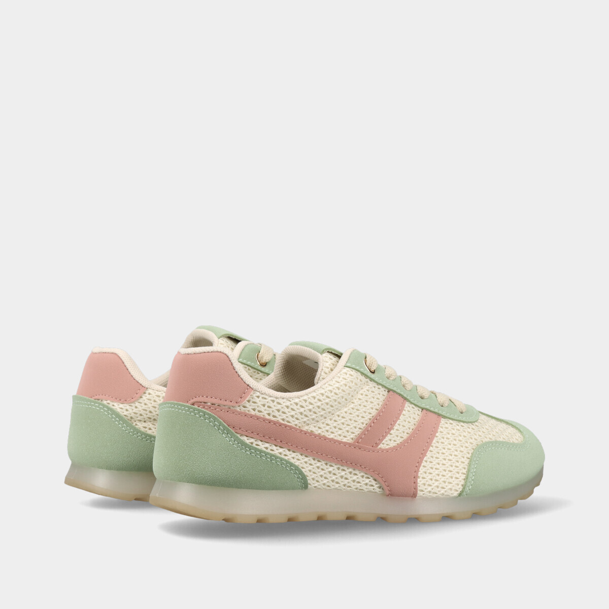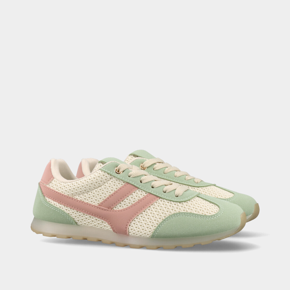 Ténis multicoloridos para mulher, com laterais em rede mesh, atacadores, forro confortável e sola de borracha. Perfeitos para looks elegantes e práticos.
