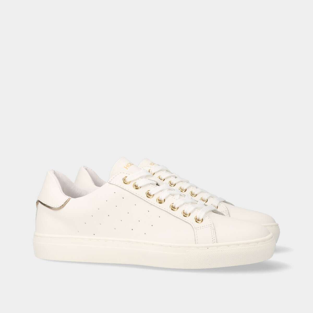 As sapatilhas em pele branca com detalhes em dourado são a definição de elegância discreta! Com um design clean e sofisticado, estas sapatilhas destacam-se pela sua simplicidade refinada. Os detalhes em dourado e o cordão acrescentam um toque de sofisticação e glamour ao calçado, sem comprometer a sua versatilidade.