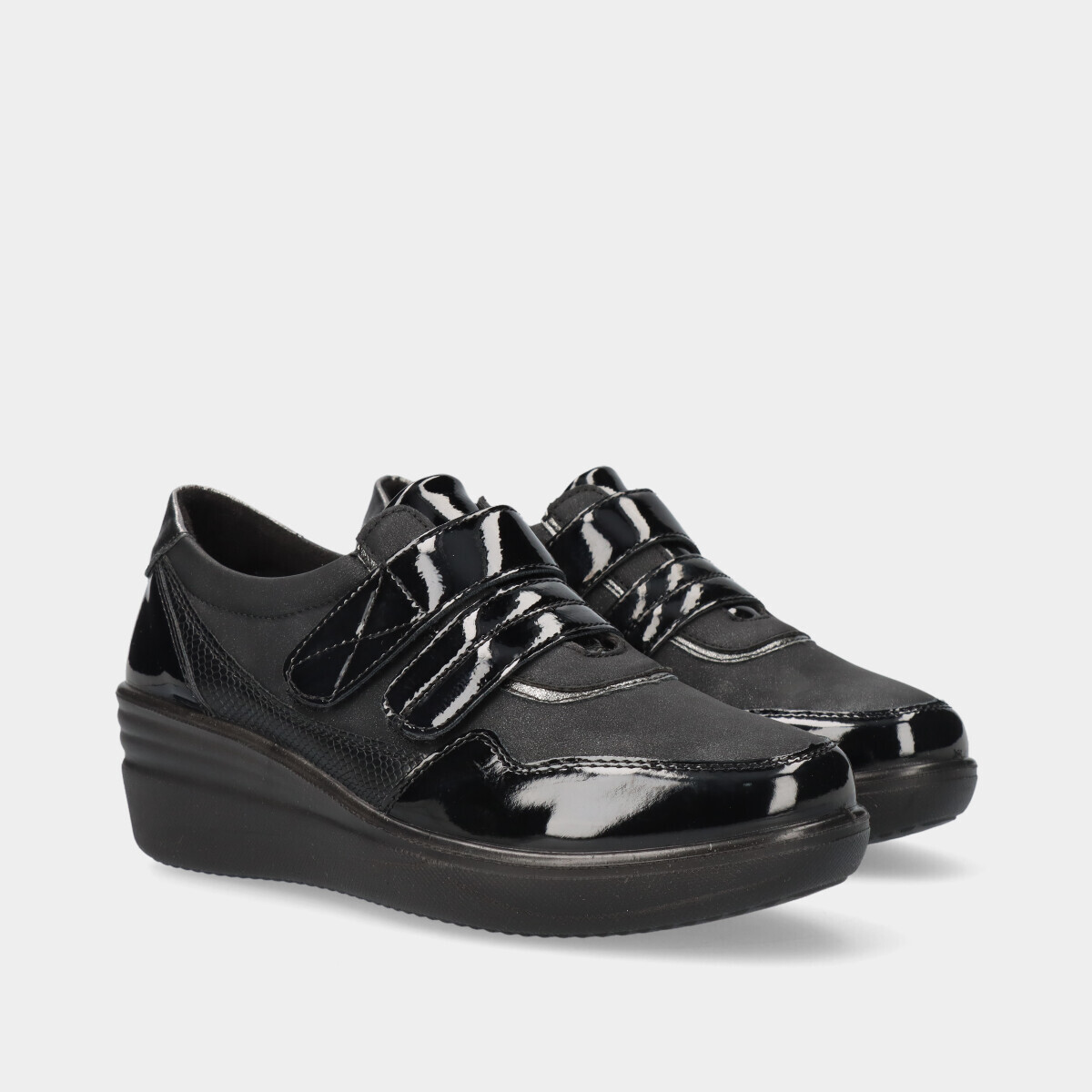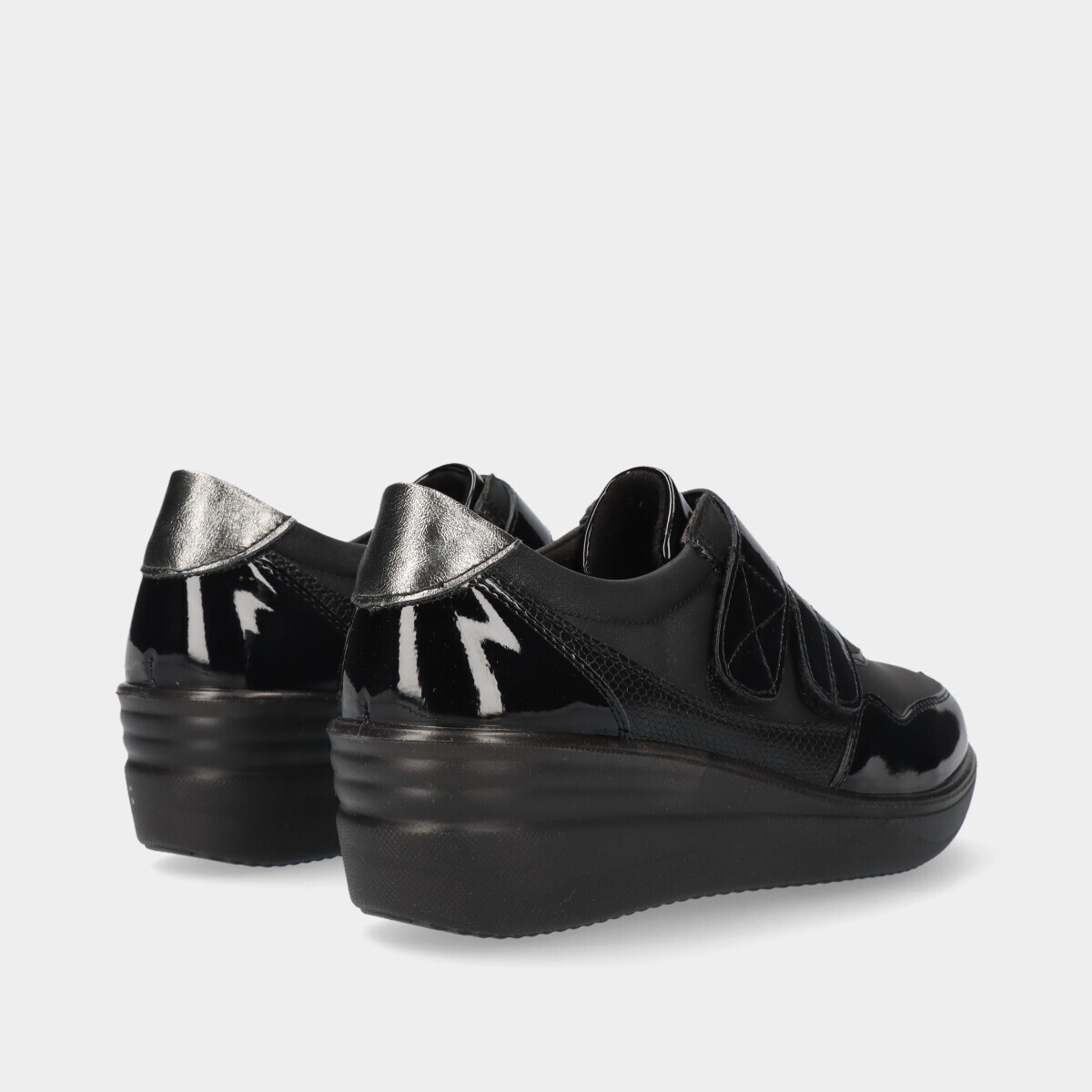 Com o toque de uma cunha elegante e a praticidade de dois fechos de velcro, esta sapatilha foi feita para elevar o seu estilo e proporcionar um conforto supremo.