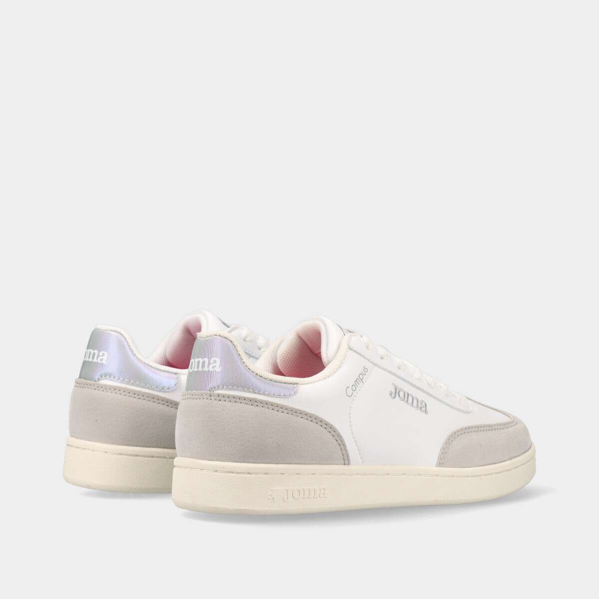Tênis na cor branca com pormenores em cinza e holográfico, palmilha MEMORY FOAM, sola de borracha DURABILITY e cordão.