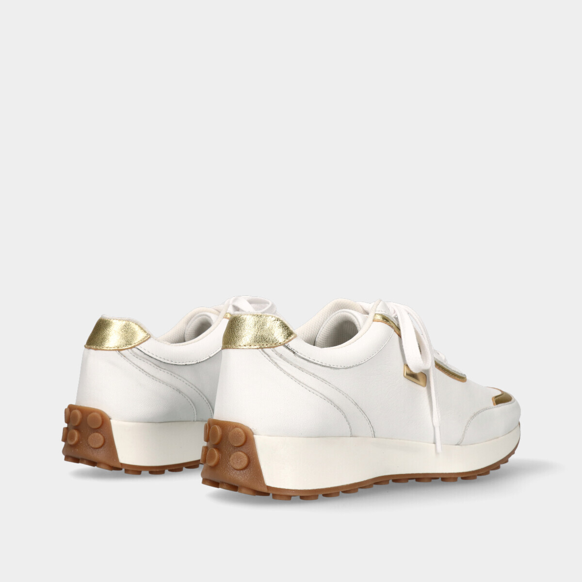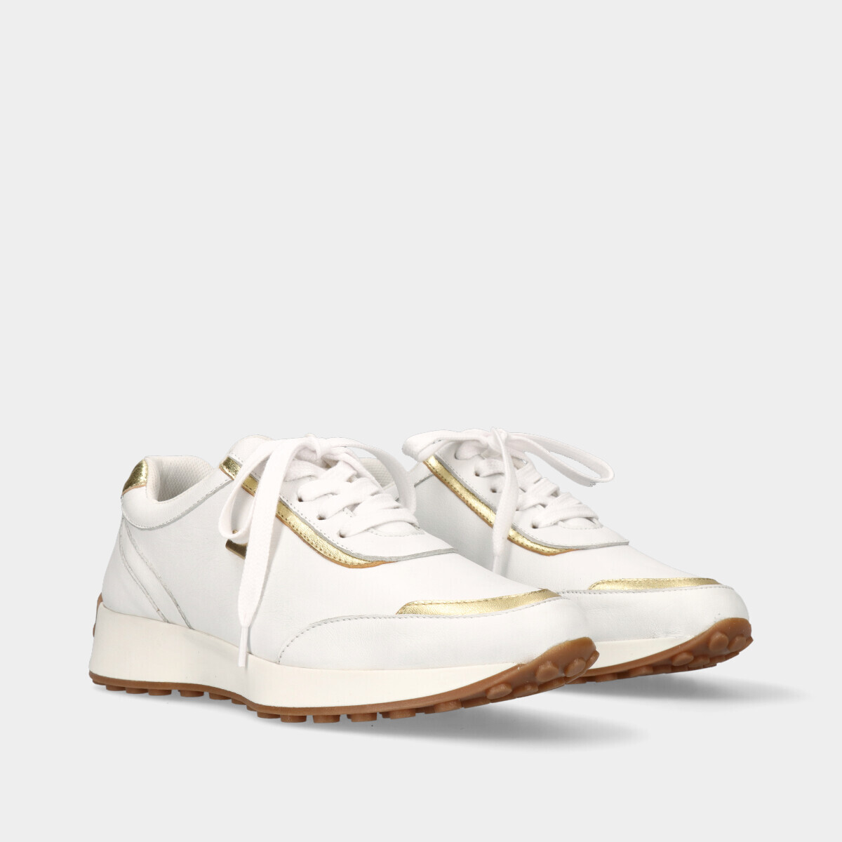 As sapatilhas em pele branca com detalhes em dourado são a definição de elegância discreta! Com um design clean e sofisticado, estas sapatilhas destacam-se pela sua simplicidade refinada. Os detalhes em dourado e o cordão acrescentam um toque de sofisticação e glamour ao calçado, sem comprometer a sua versatilidade.
