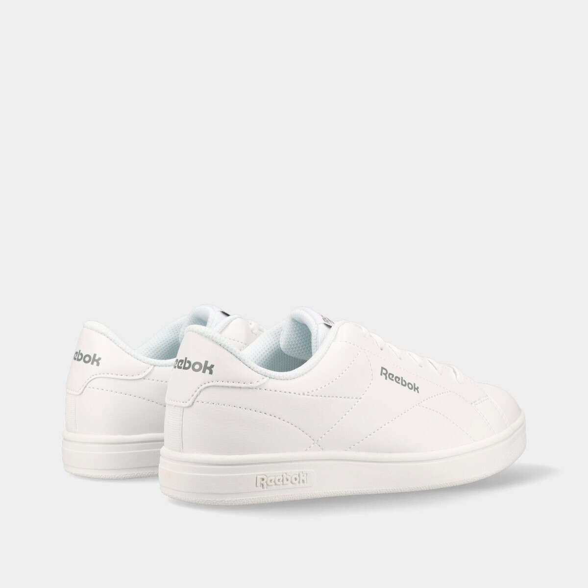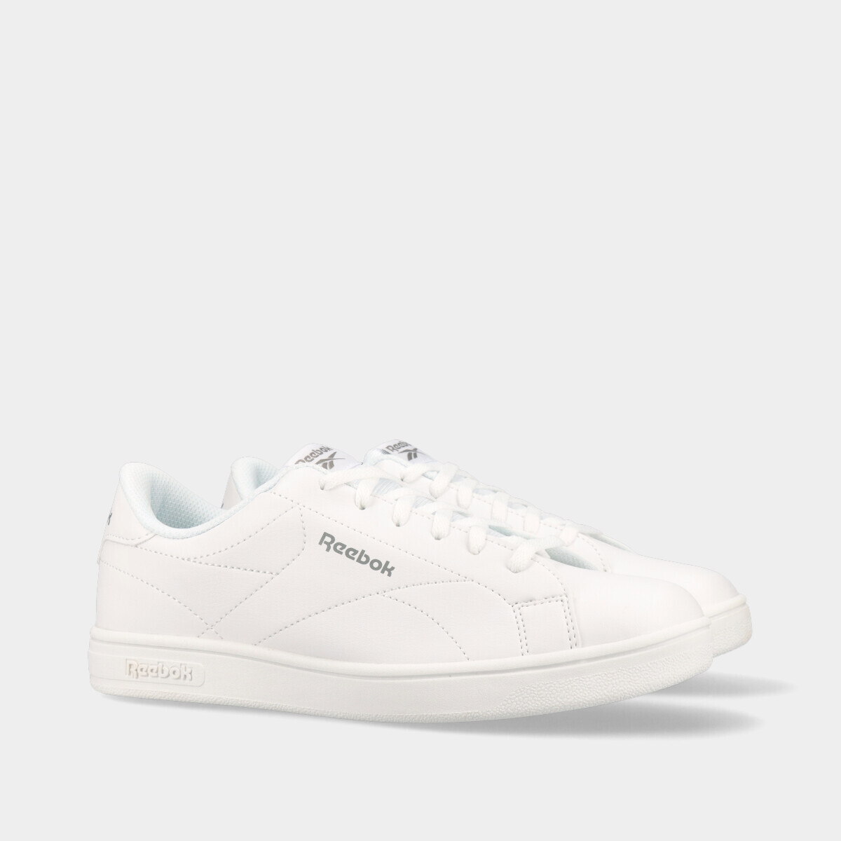 Ténis Reebok Court Clean de mulher, em branco, com atacadores e design intemporal inspirado no desporto. Concebidos para conforto diário e utilização casual, são ideais para quem procura ténis práticos, modernos e fáceis de combinar.