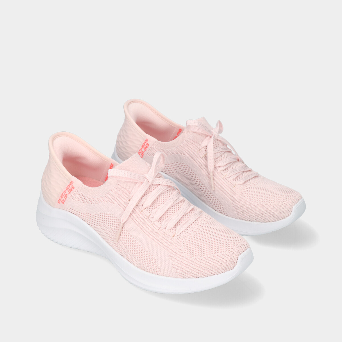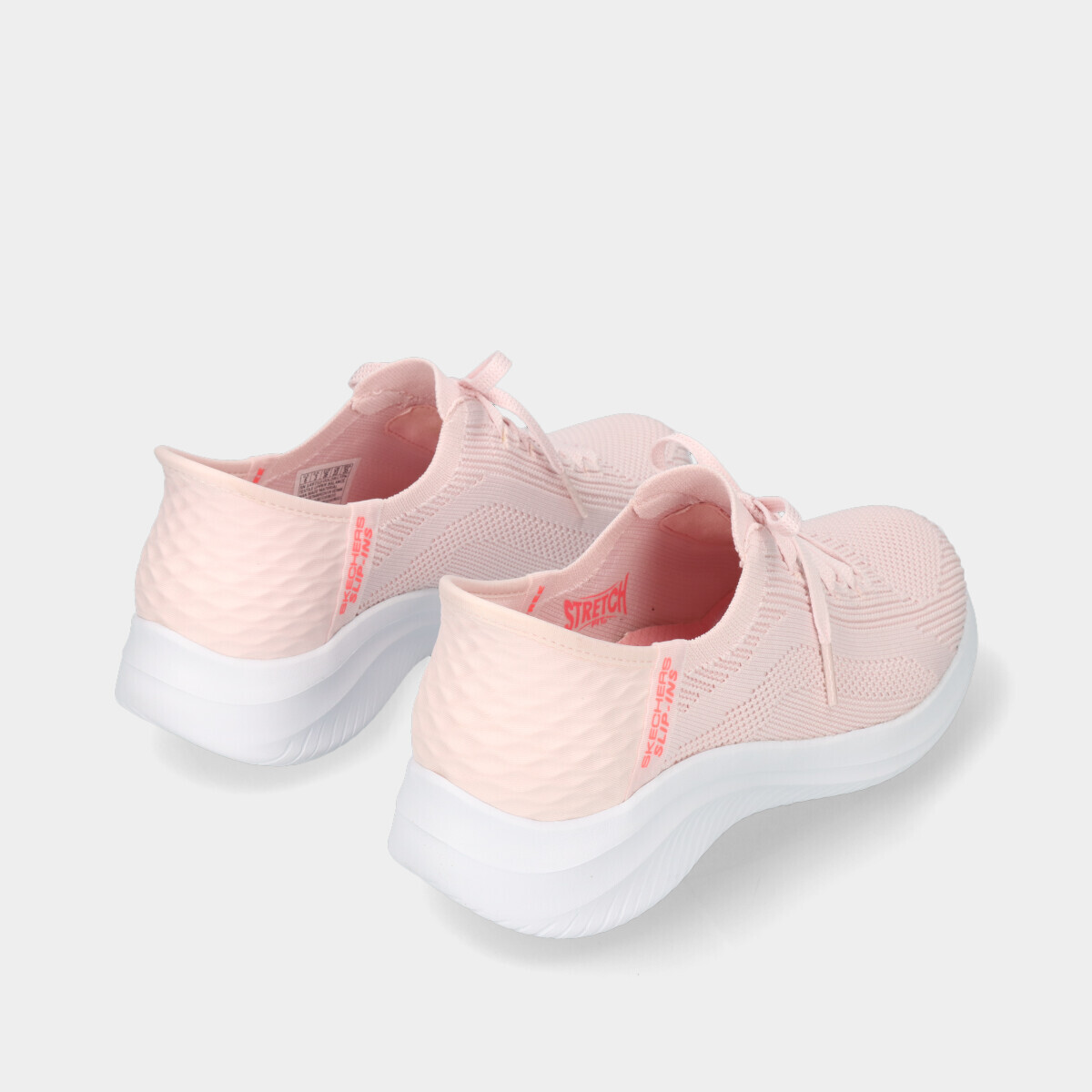 Desfrute de caminhadas confortáveis e sem esforço com as sapatilhas Skechers Ultra Flex 3.0 Brilliant Path na cor rosa! Estas sapatilhas slip-on apresentam um design exclusivo com o Heel Pillow™, proporcionando estabilidade e conforto ao caminhar. A parte superior em malha com cordões elásticos decorativos oferece um ajuste flexível e fácil de calçar, enquanto a palmilha almofadada Skechers Air-Cooled Memory Foam® garante um amortecimento superior a cada passo. O design Hands Free Slip-ins® permite um calçar sem complicações. Feitas com materiais 100% veganos, estas sapatilhas também são laváveis na máquina, contribuindo para a higiene e frescura duradoura. Idealizadas com um design Stretch Fit® para um ajuste confortável tipo meia, são a escolha perfeita para o seu dia a dia ativo.