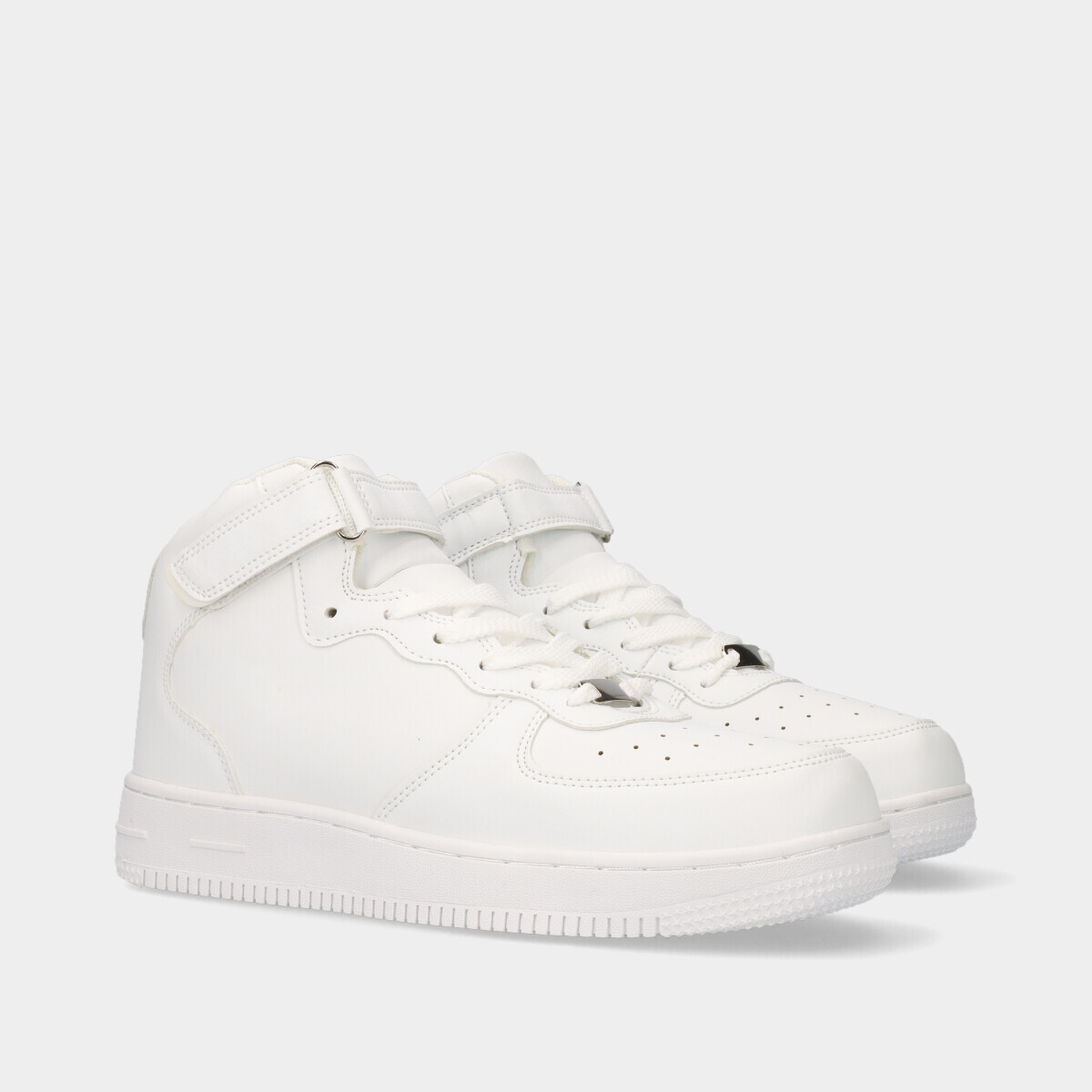 Com um design contemporâneo e um branco puro e luminoso, estas sapatilhas são a escolha perfeita para quem valoriza a elegância e o conforto.
