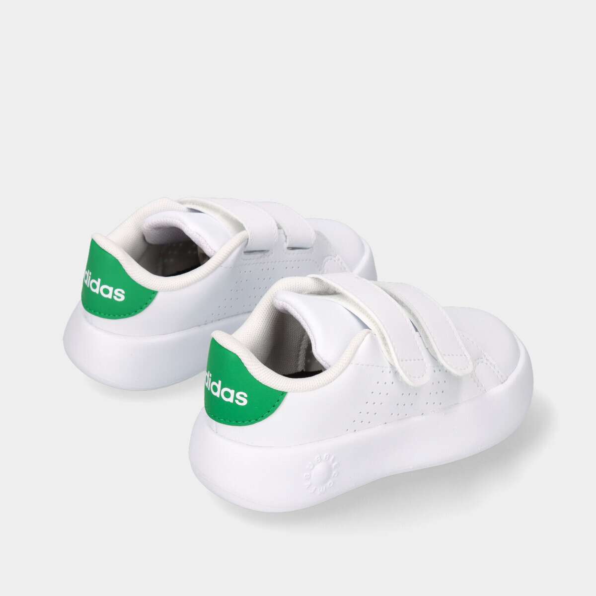Sapatilha Adidas advantage unissexo na cor branca com verde. Os velcros facilitam o calçar, enquanto as solas às bolinhas em EVA asseguram conforto máximo.