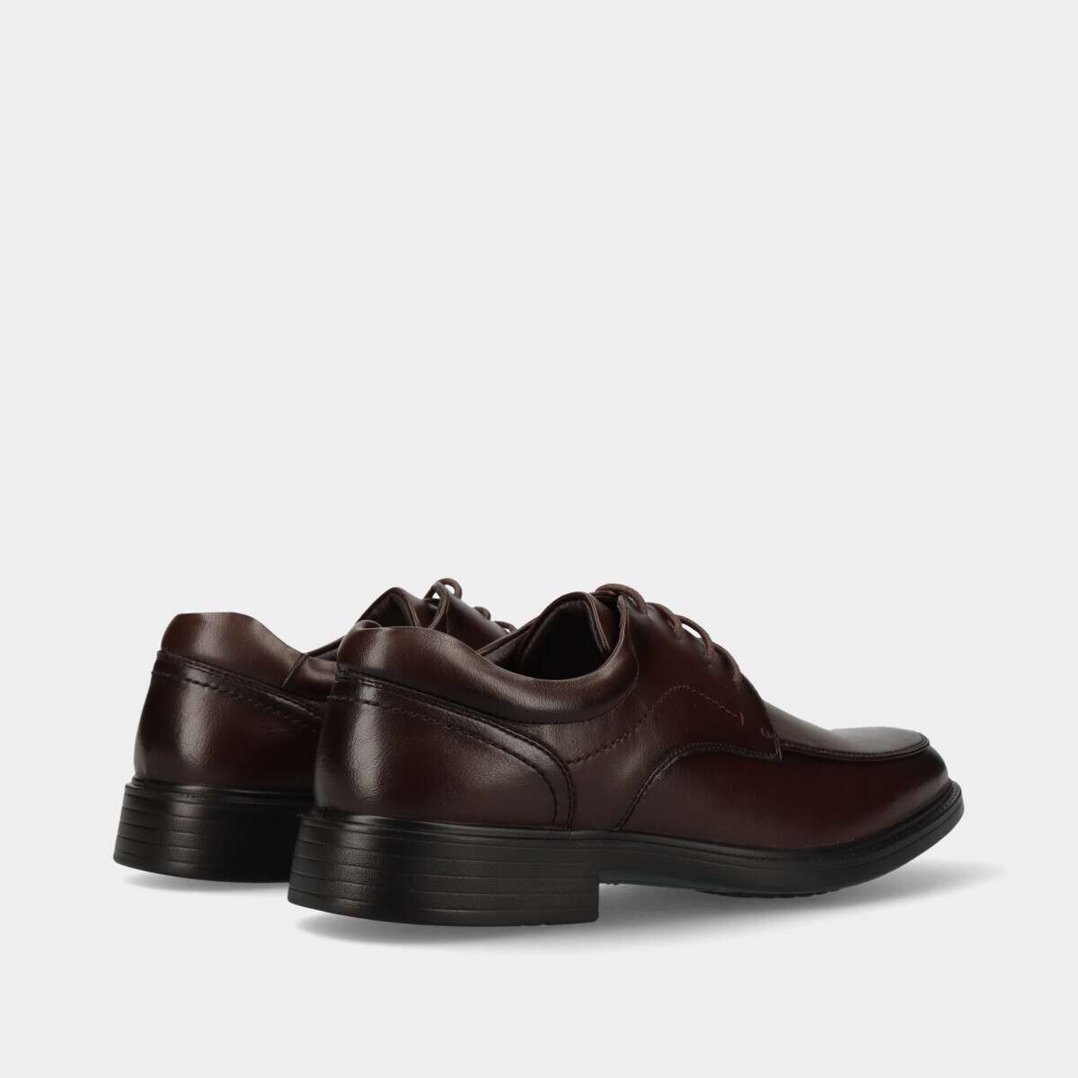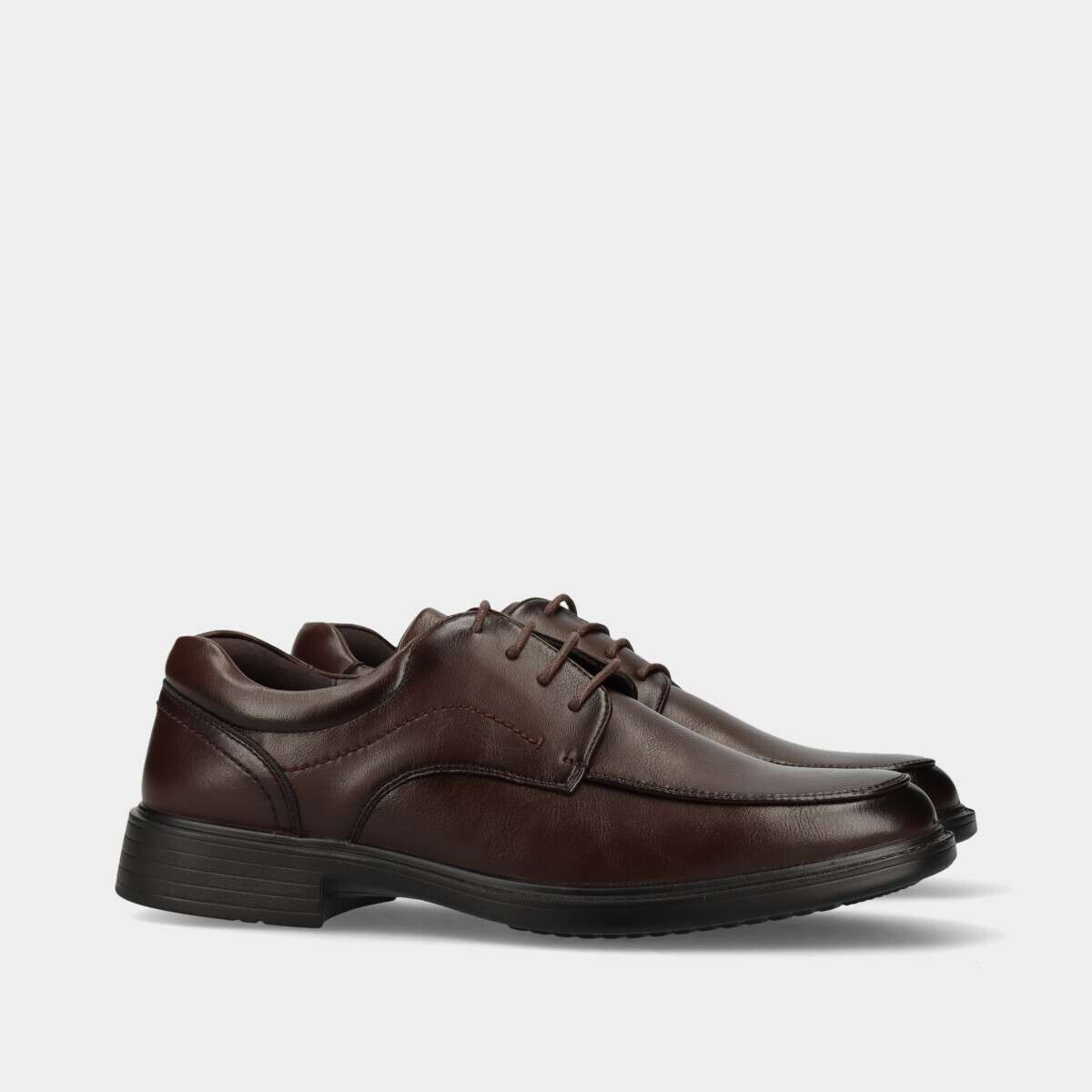 Sapato clássico castanho escuro com cordão, sola de borracha e palmilha em pele confortável para uso prolongado.