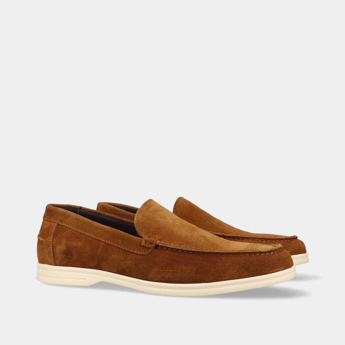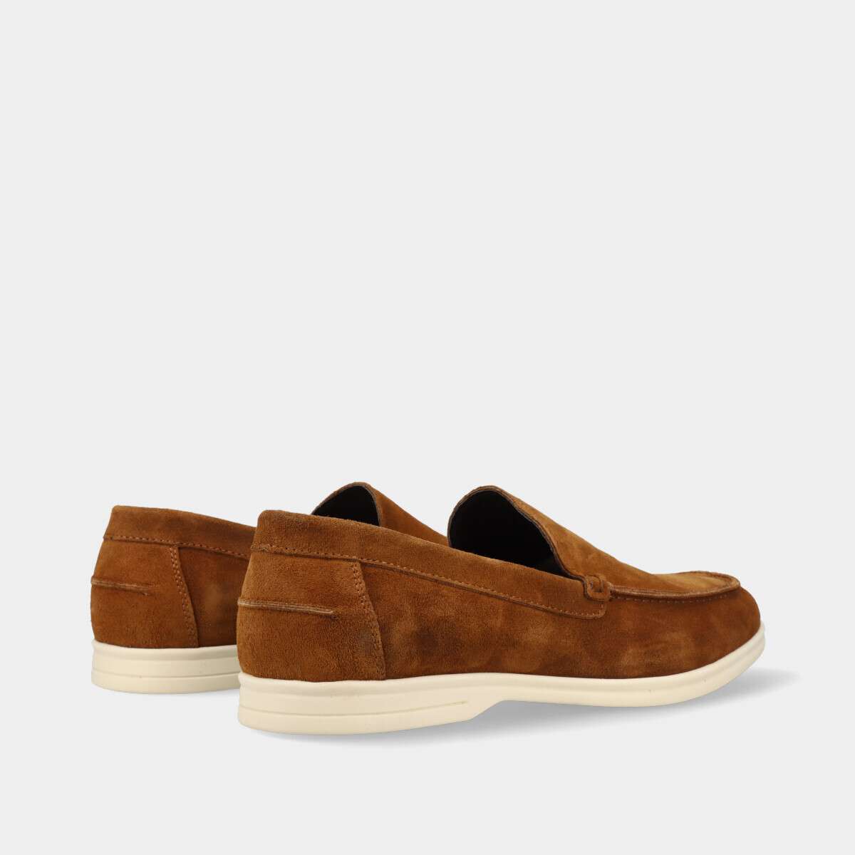 Mocassim casual na cor camel com sola de borracha.
