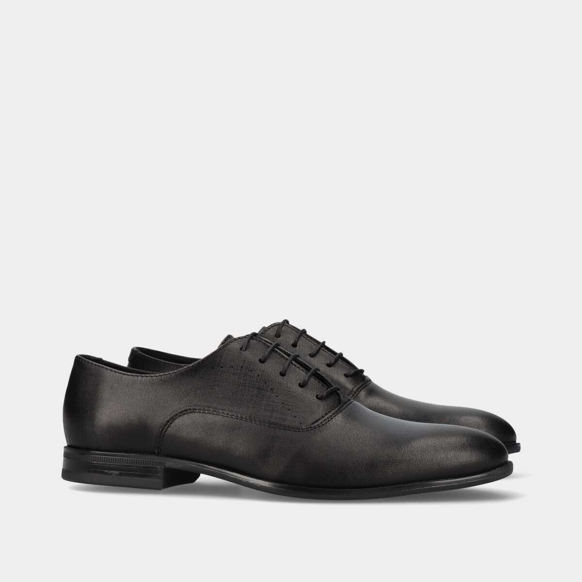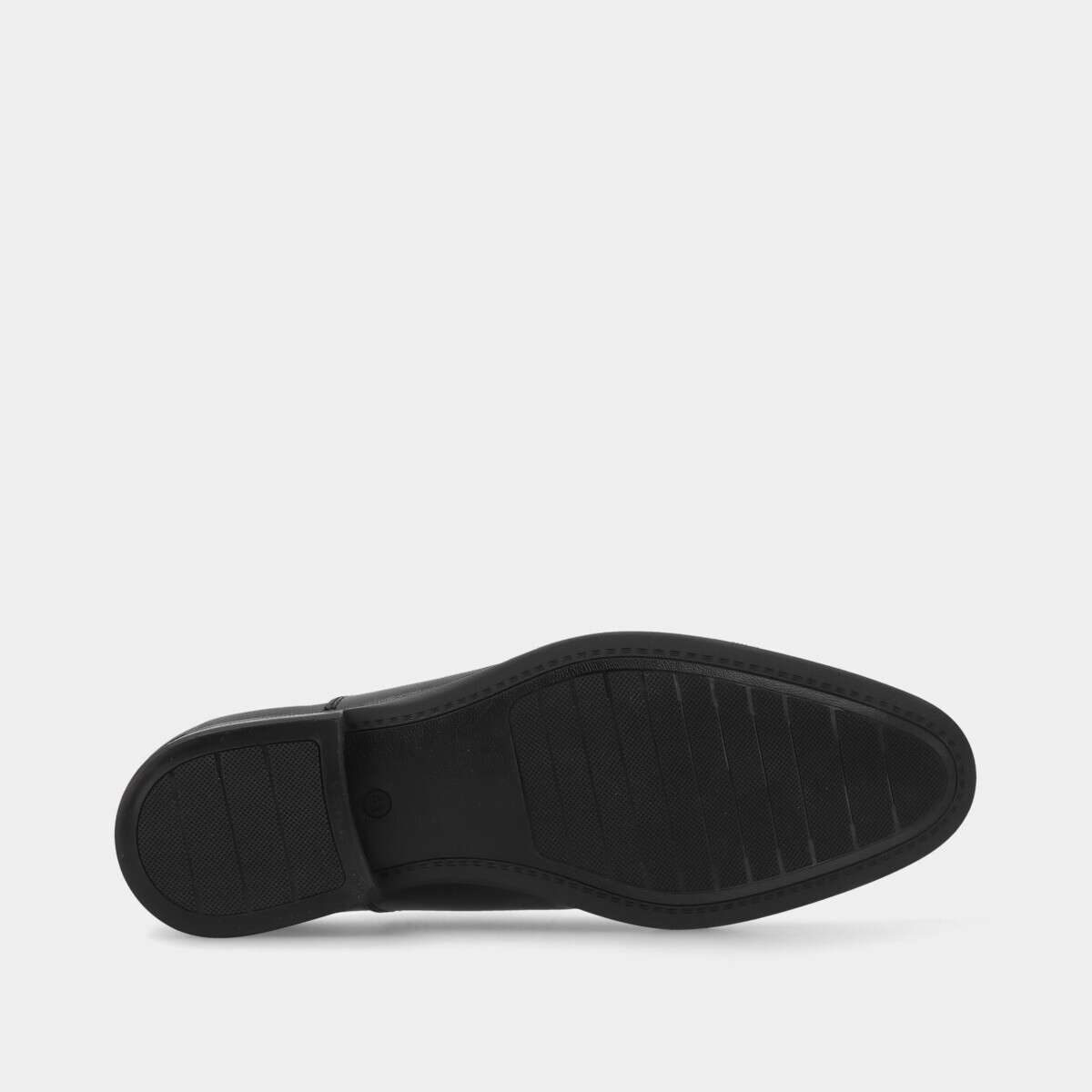 Sapato clássico na cor preta, de cordão e sola de borracha.