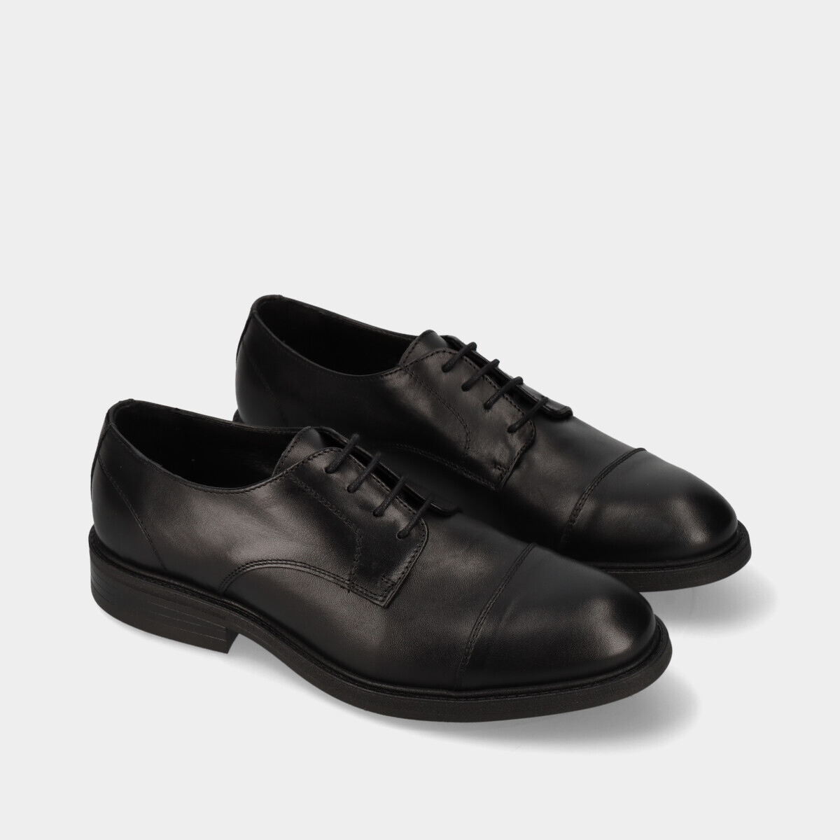 Sapato clássico de homem em pele preta, com biqueira redonda e sola de borracha. Perfeito para casamentos, cerimónias e outros eventos formais ou profissionais.