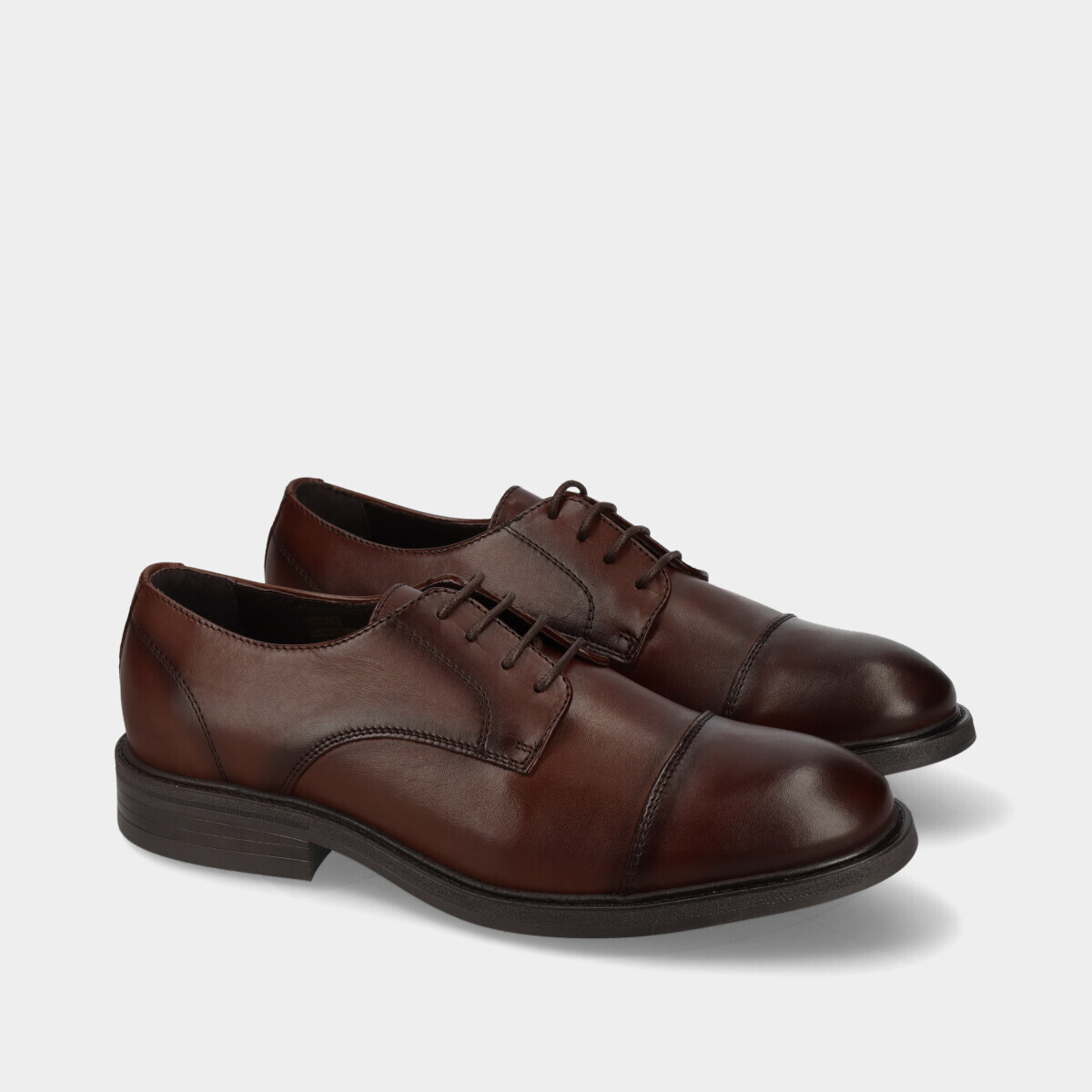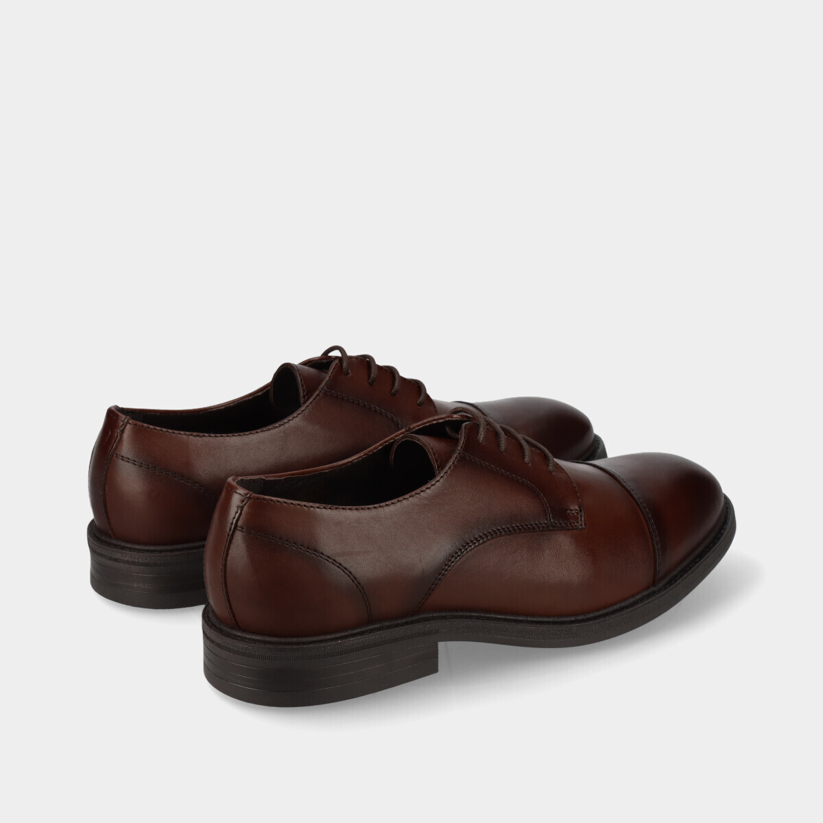 Sapato clássico de homem em pele castanha, com biqueira redonda e sola de borracha. Perfeito para casamentos, cerimónias e outros eventos formais ou profissionais.