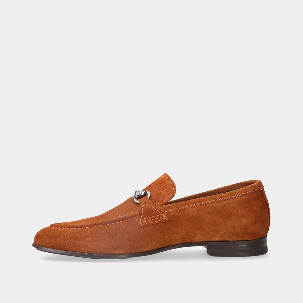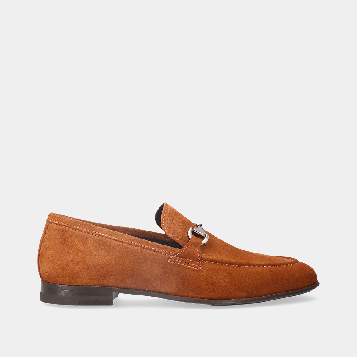 Sapato mocassim em pele conhaque com berloques e palmilha acolchoada para maior conforto. Fabricado em Portugal.