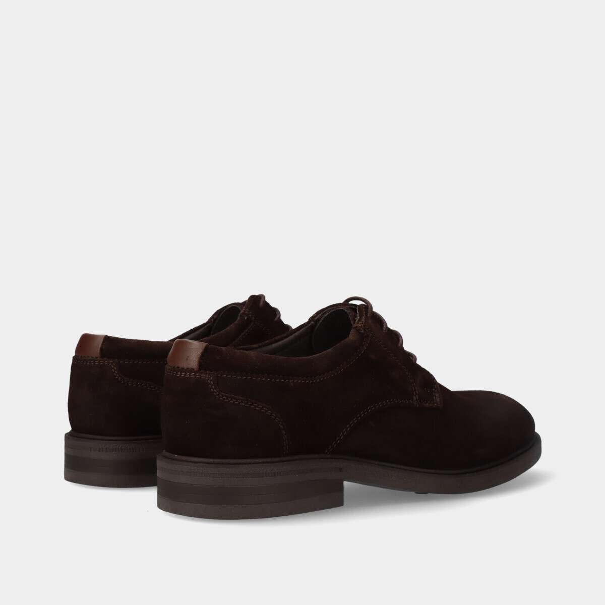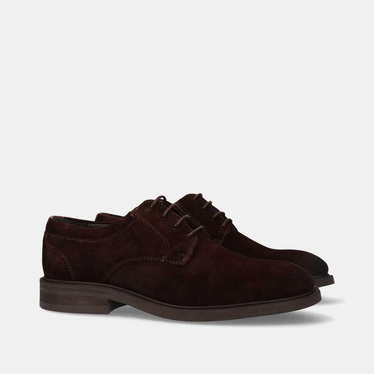 Sapato em pele camurça na cor castanha com cordão.