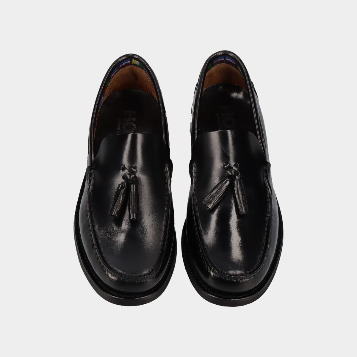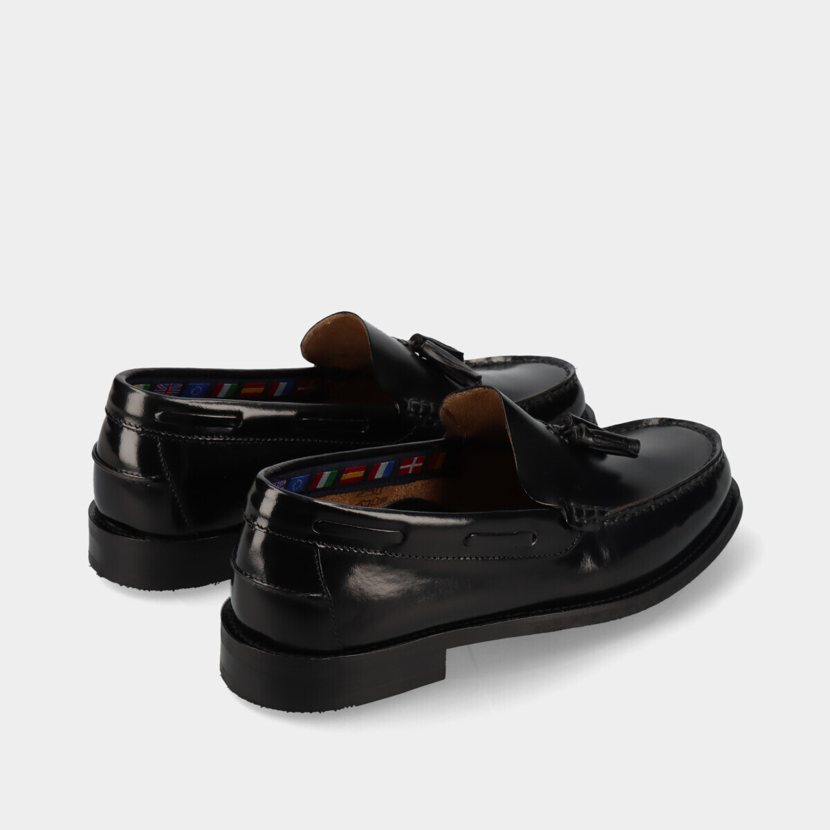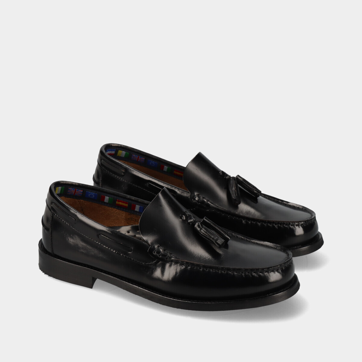 Mocassim clássico em pele preta polida, com berloques, biqueira redonda e sola de borracha. Perfeito para casamentos, cerimónias e outros eventos formais ou profissionais. Fabricado em Portugal com materiais de alta qualidade.