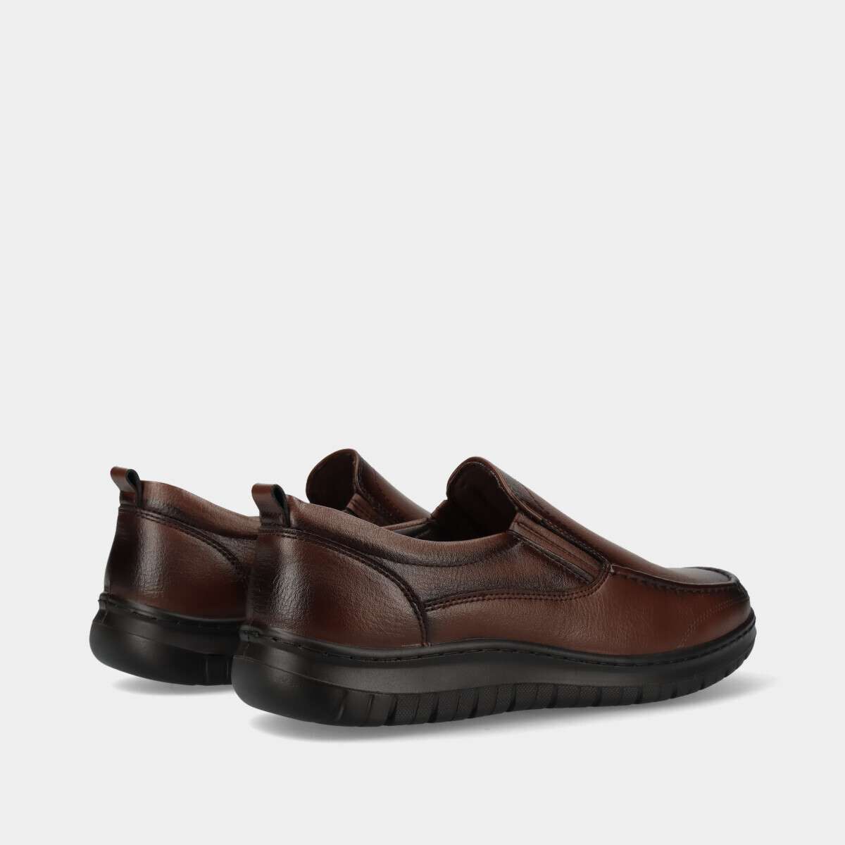 Sapato masculino na cor castanha.
