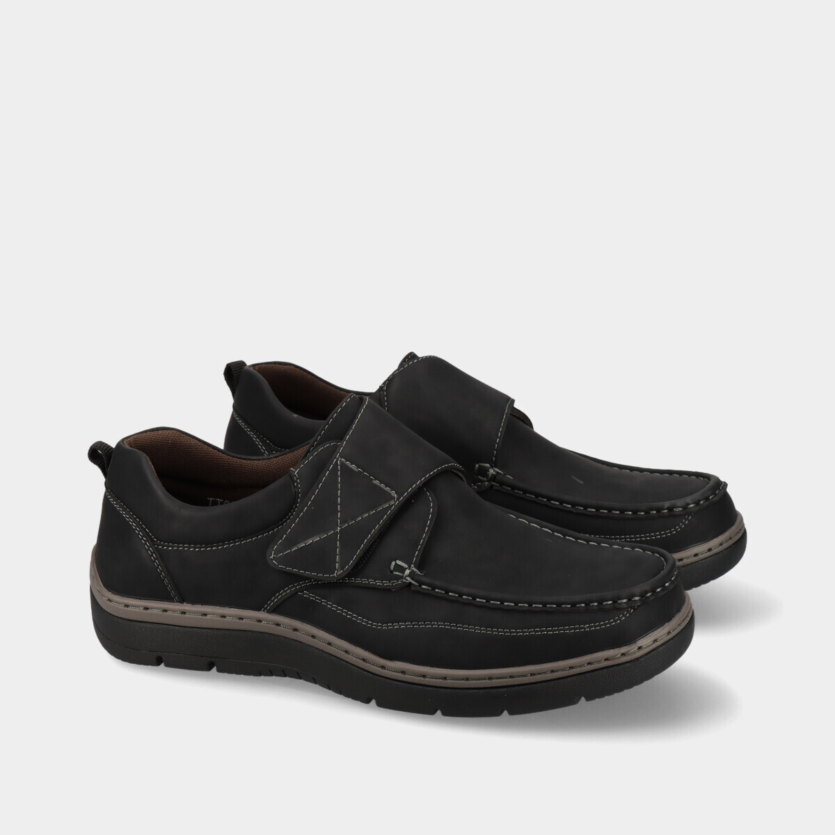 Sapato estilo vela para homem, com fecho em velcro que facilita o calçar, sola leve e robusta, e palmilha acolchoada que garante conforto durante todo o dia.