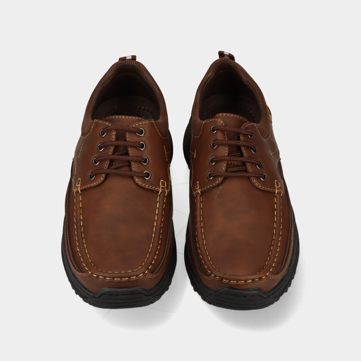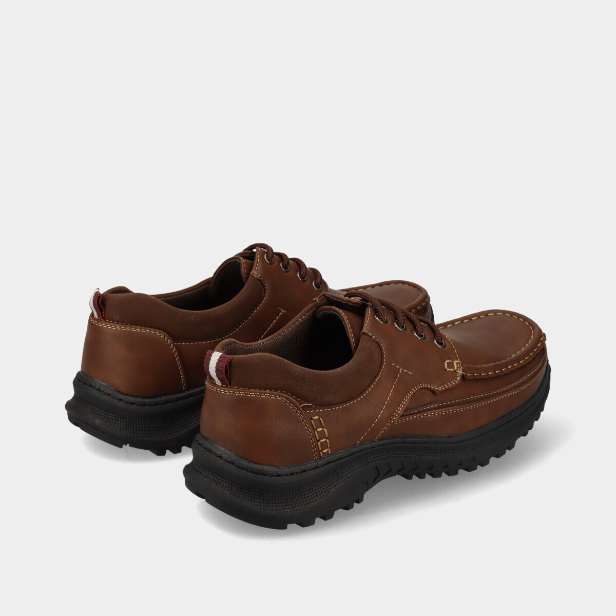 Sapatos de conforto para homem em castanho, ideais para o dia a dia, com sola leve e robusta estilo trekking, palmilha acolchoada e atacadores para ajuste perfeito.