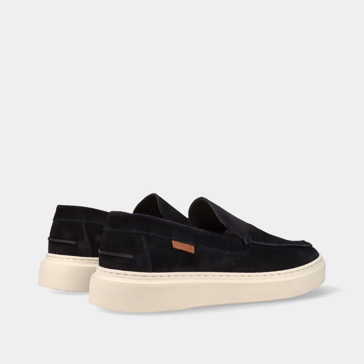 Mocassim casual na cor azul com sola robusta.