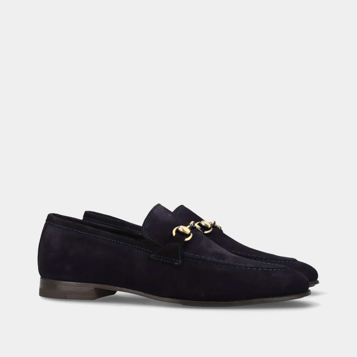 Mocassins de homem em camurça com aplicação metálica e palmilha acolchoada. Elegantes e confortáveis, ideais para looks formais ou casuais. Calçado clássico masculino, fabricado em Portugal.