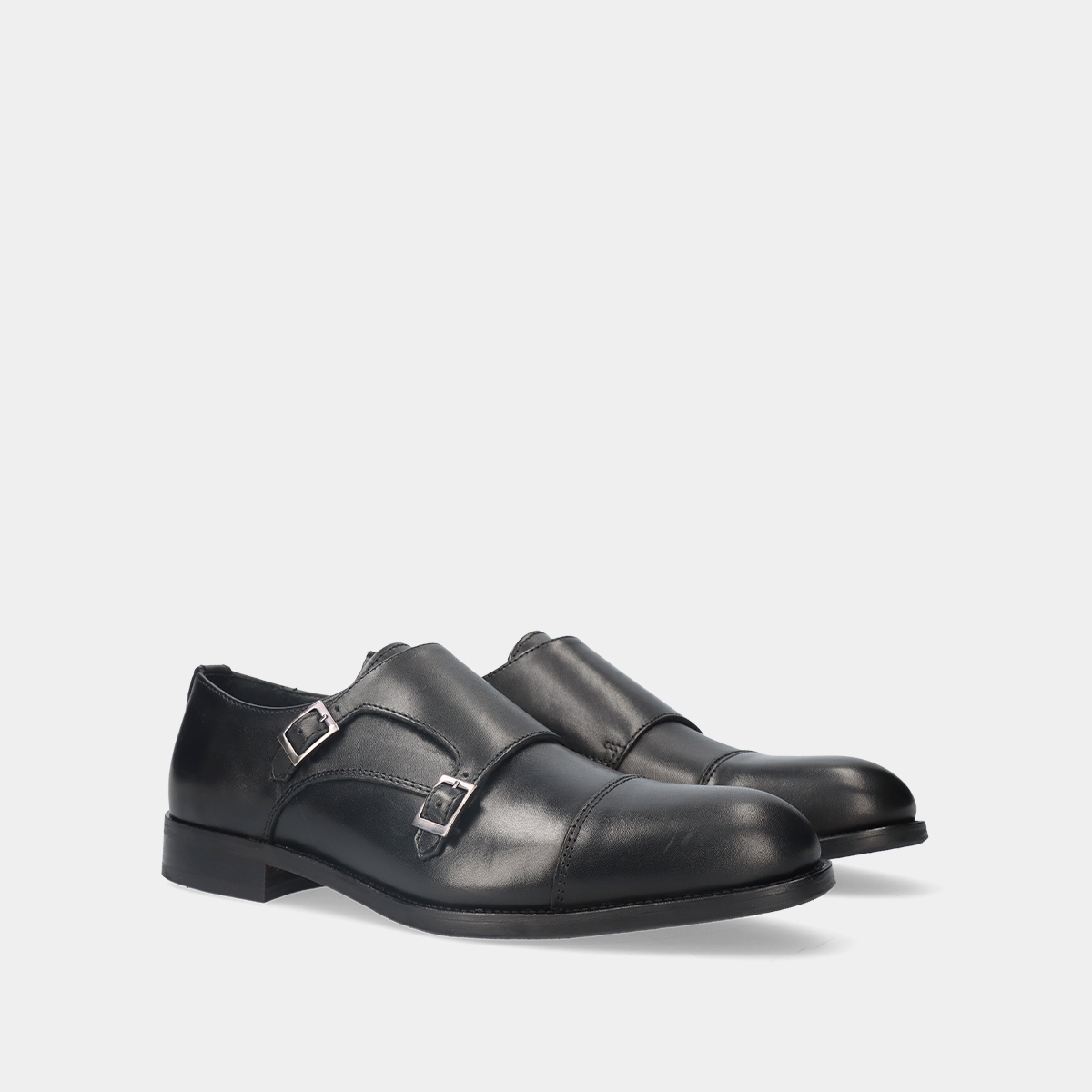 Sapatos clássicos de homem em pele preta, com fivelas ajustáveis, biqueira redonda e sola pré-fabricada com rasto de borracha. Perfeitos para casamentos, cerimónias e outros eventos formais ou profissionais. Fabricados em Portugal com materiais de alta qualidade.