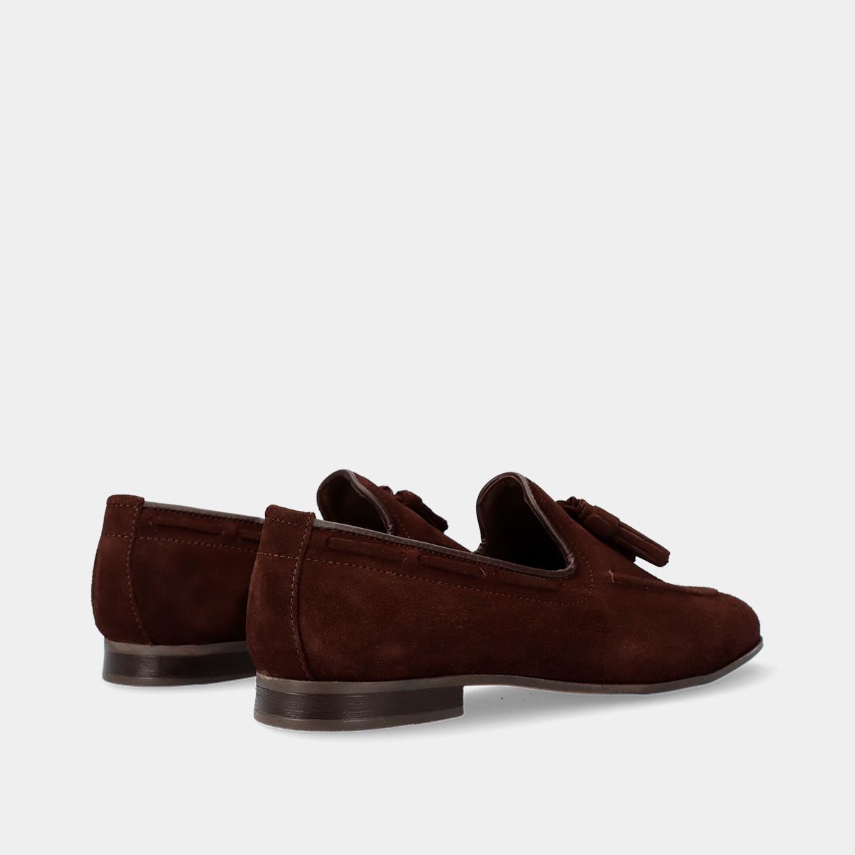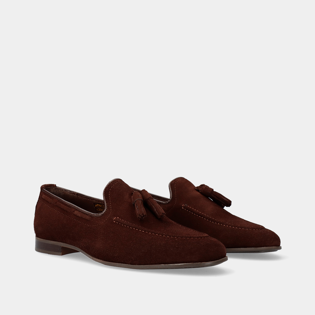 Mocassins de homem em pele camurça castanha, com berloques, biqueira redonda e sola de borracha. Perfeitos para casamentos, cerimónias e outros eventos formais ou profissionais. Fabricados em Portugal com materiais de alta qualidade.