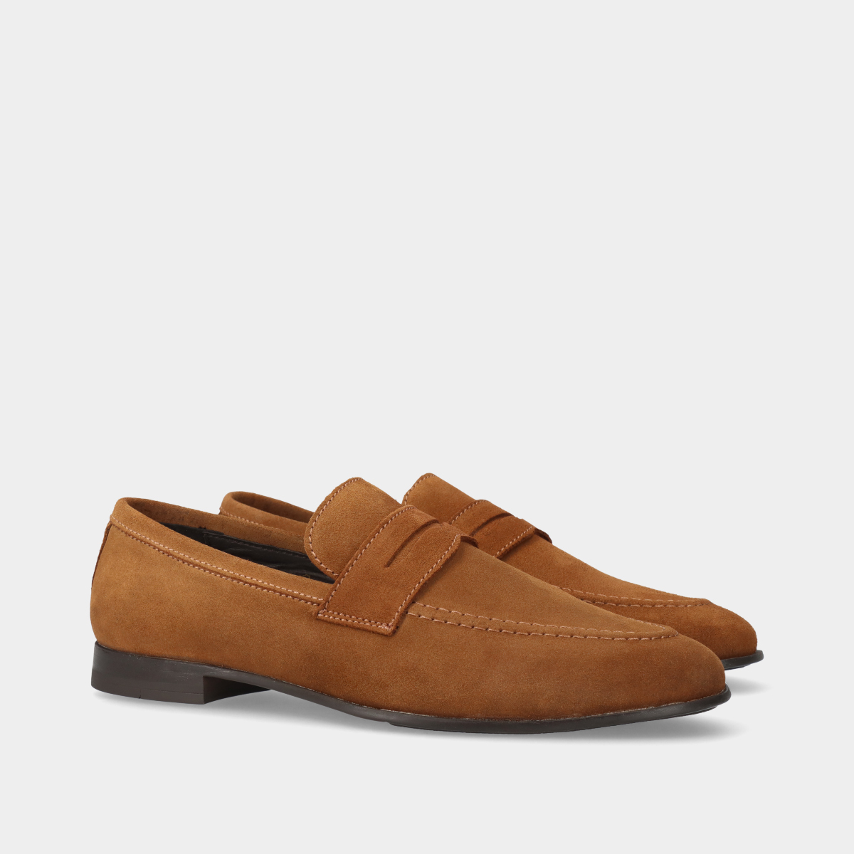 Mocassins de homem em pele camurça camel, com biqueira redonda e sola de borracha. Perfeitos para casamentos, cerimónias e outros eventos formais ou profissionais. Fabricados em Portugal com materiais de alta qualidade.