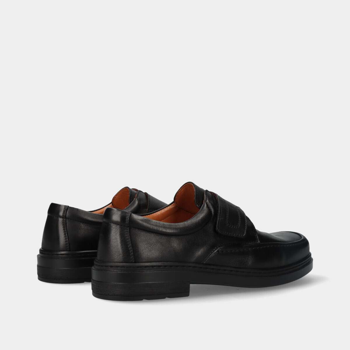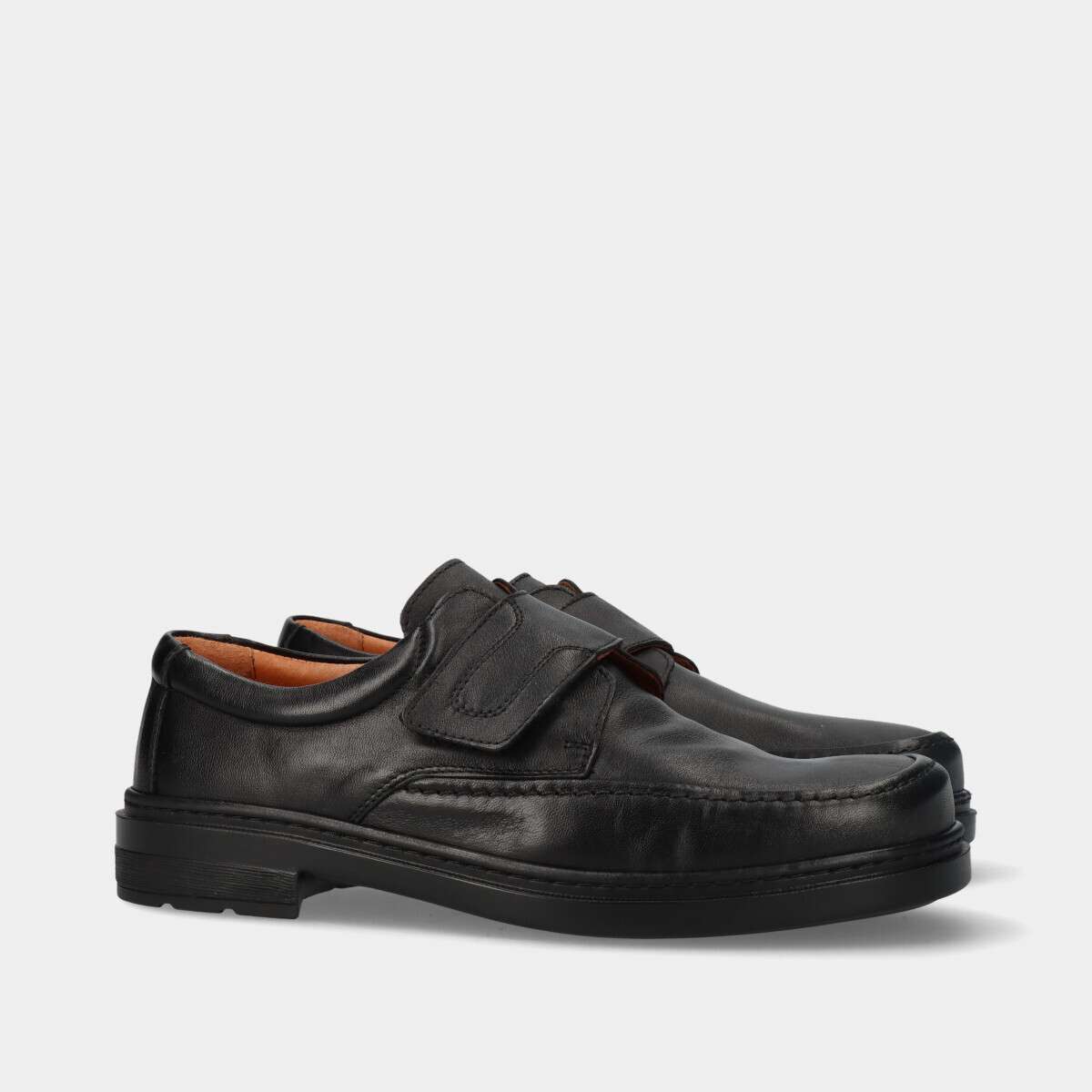 Sapato de homem na cor preta de conforto com prático fecho de velcro no peito do pé.