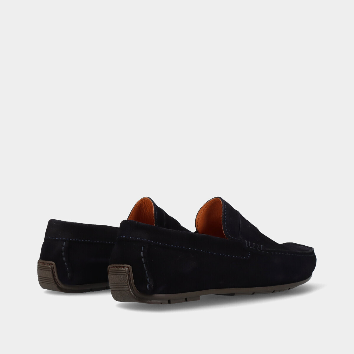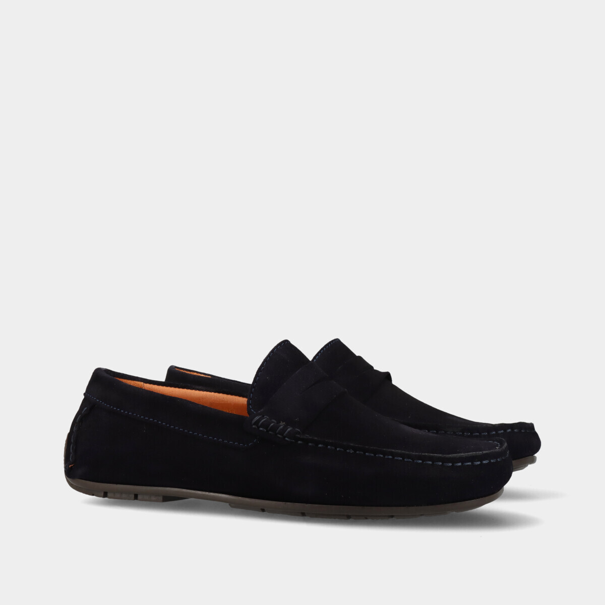 Sapatos loafers de homem em pele camurça, com biqueira afunilada, palmilha removível e sola de borracha flexível. Confortáveis e fáceis de calçar, de fabrico nacional, ideais para cerimónias ou para uso diário. Fabricados em Portugal.