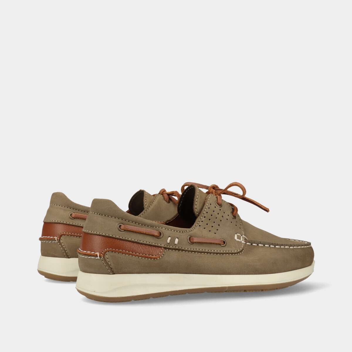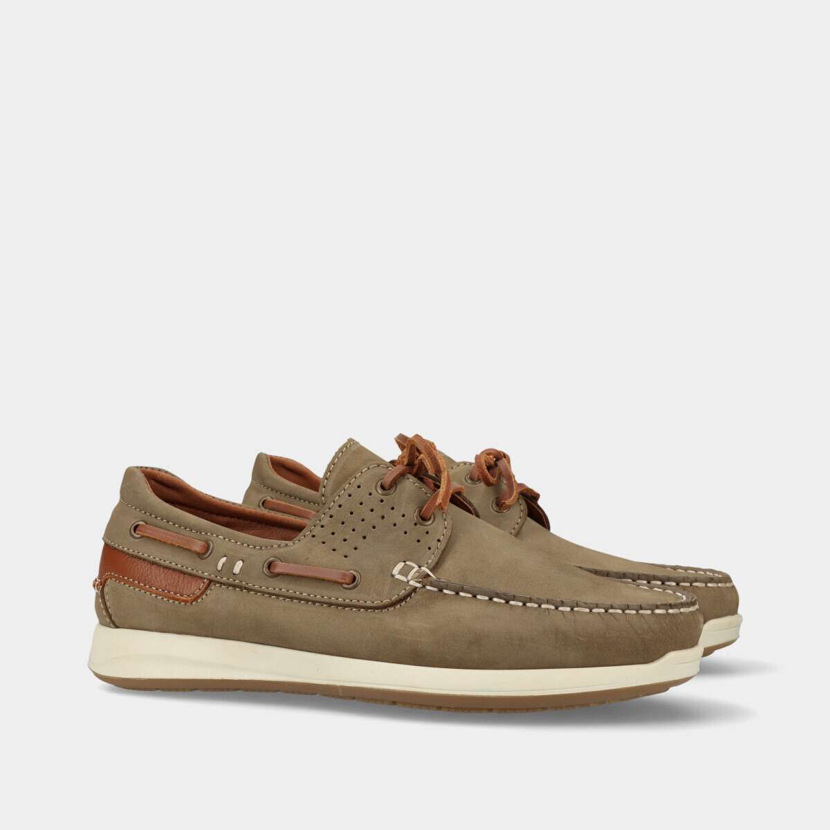 Sapato de vela em pele nobuck na cor taupe.