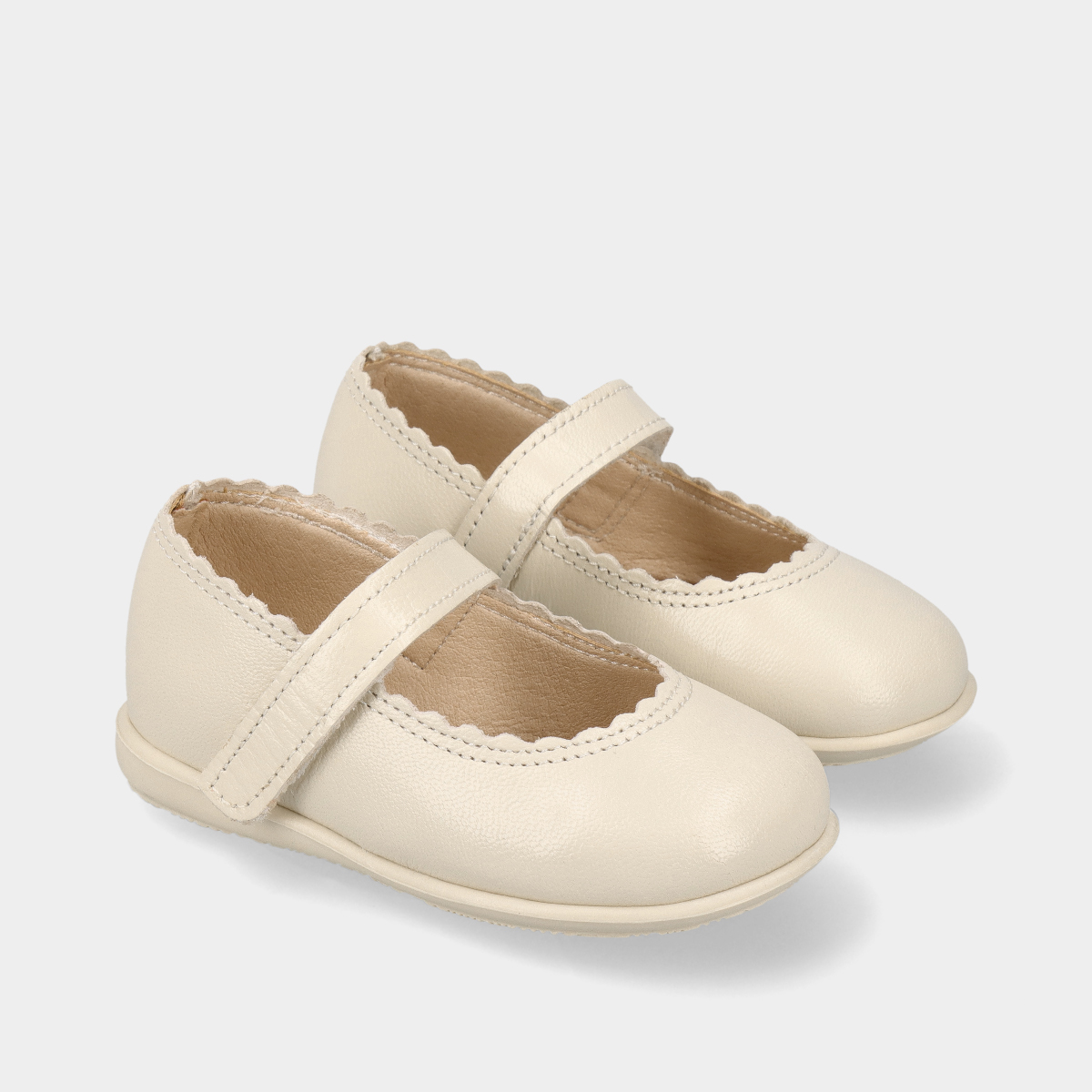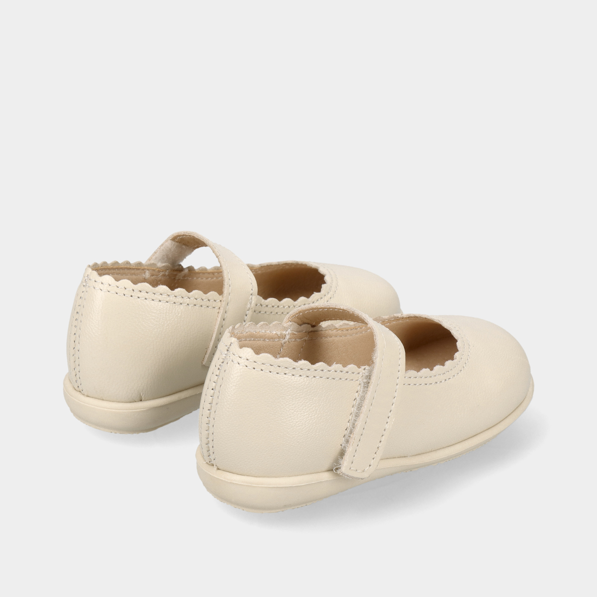 Sabrinas para menina de efeito pele bege com biqueira redonda e tira de velcro no peito do pé para um ajuste prático e seguro. Palmilha confortável e interior macio para maior bem-estar. Sola de borracha flexível e resistente. Ideais para cerimónias, festas ou uso elegante no dia a dia.