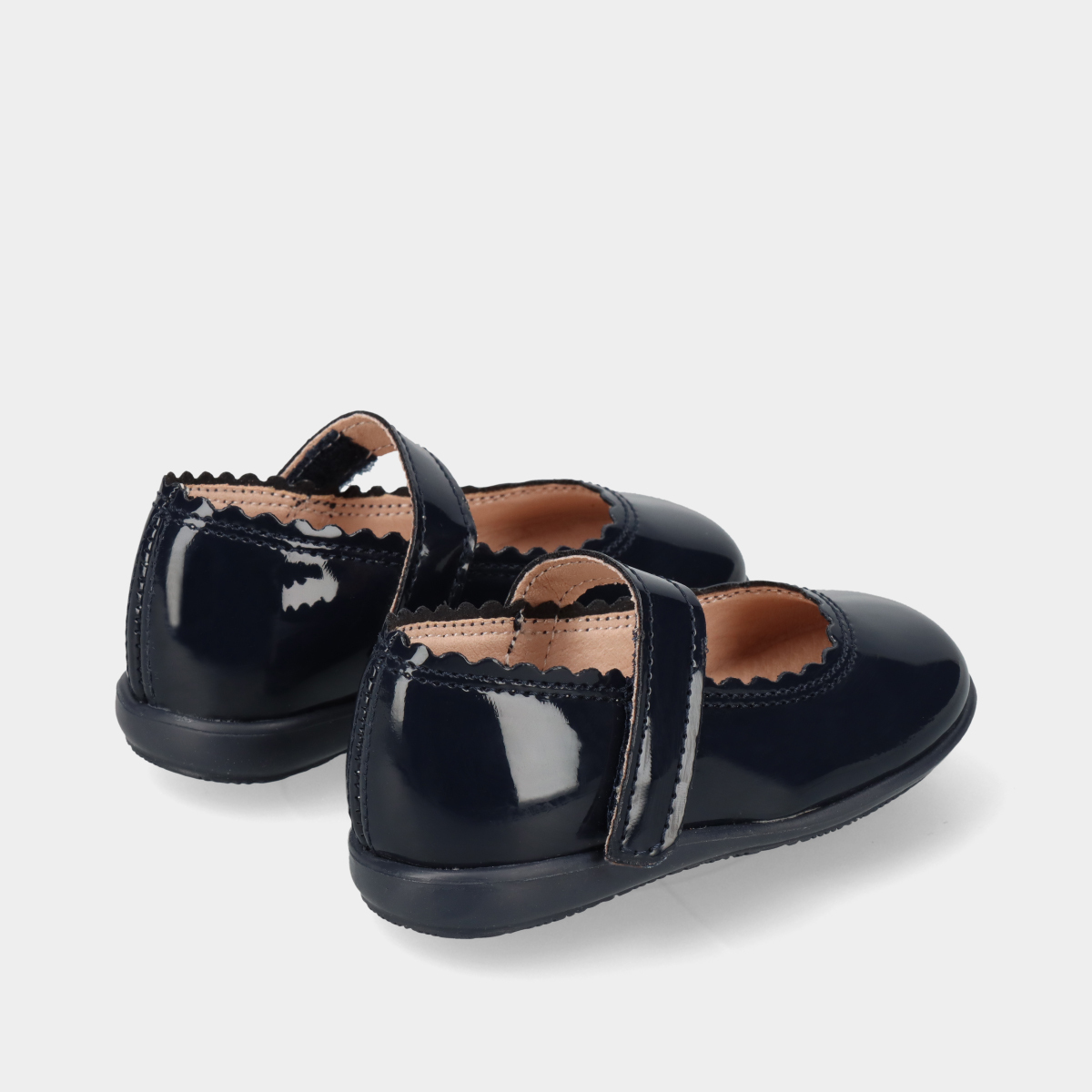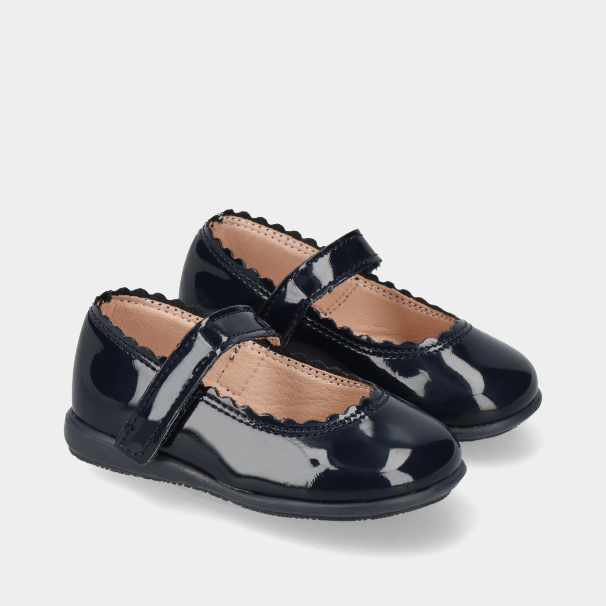 Sabrinas para menina de verniz azul com biqueira redonda e tira de velcro no peito do pé para um ajuste prático e seguro. Palmilha confortável e interior macio para maior bem-estar. Sola de borracha flexível e resistente. Ideais para cerimónias, festas ou uso elegante no dia a dia.