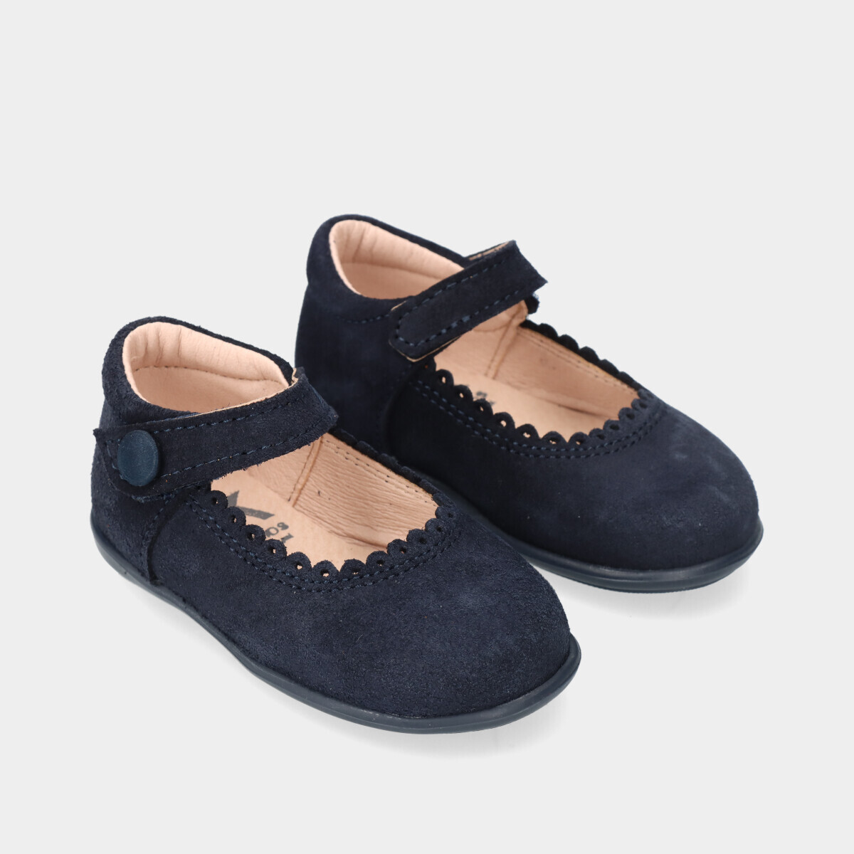 Os sapatos em camurça de velcro na cor azul-marinho para criança são uma escolha prática e elegante para os mais pequenos.