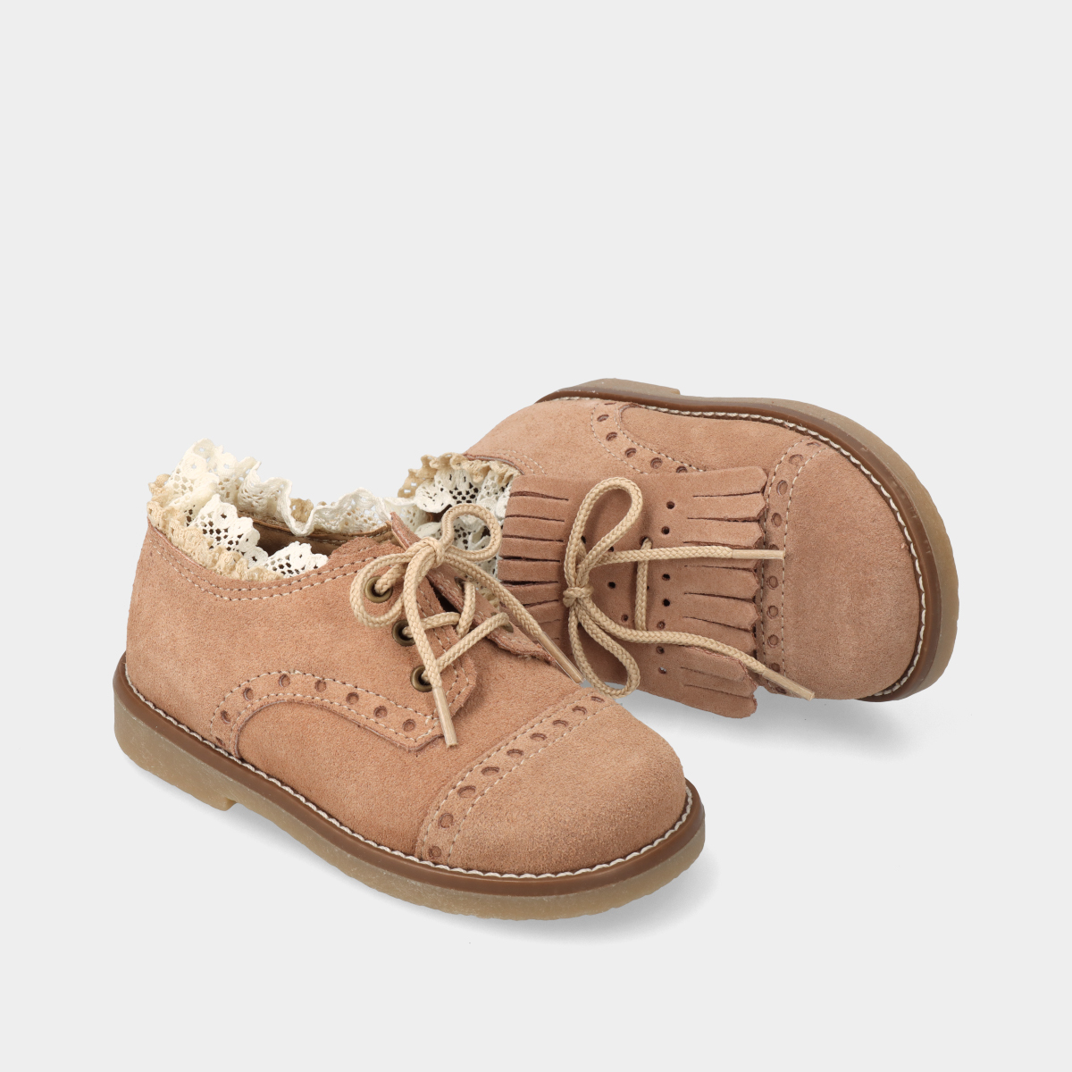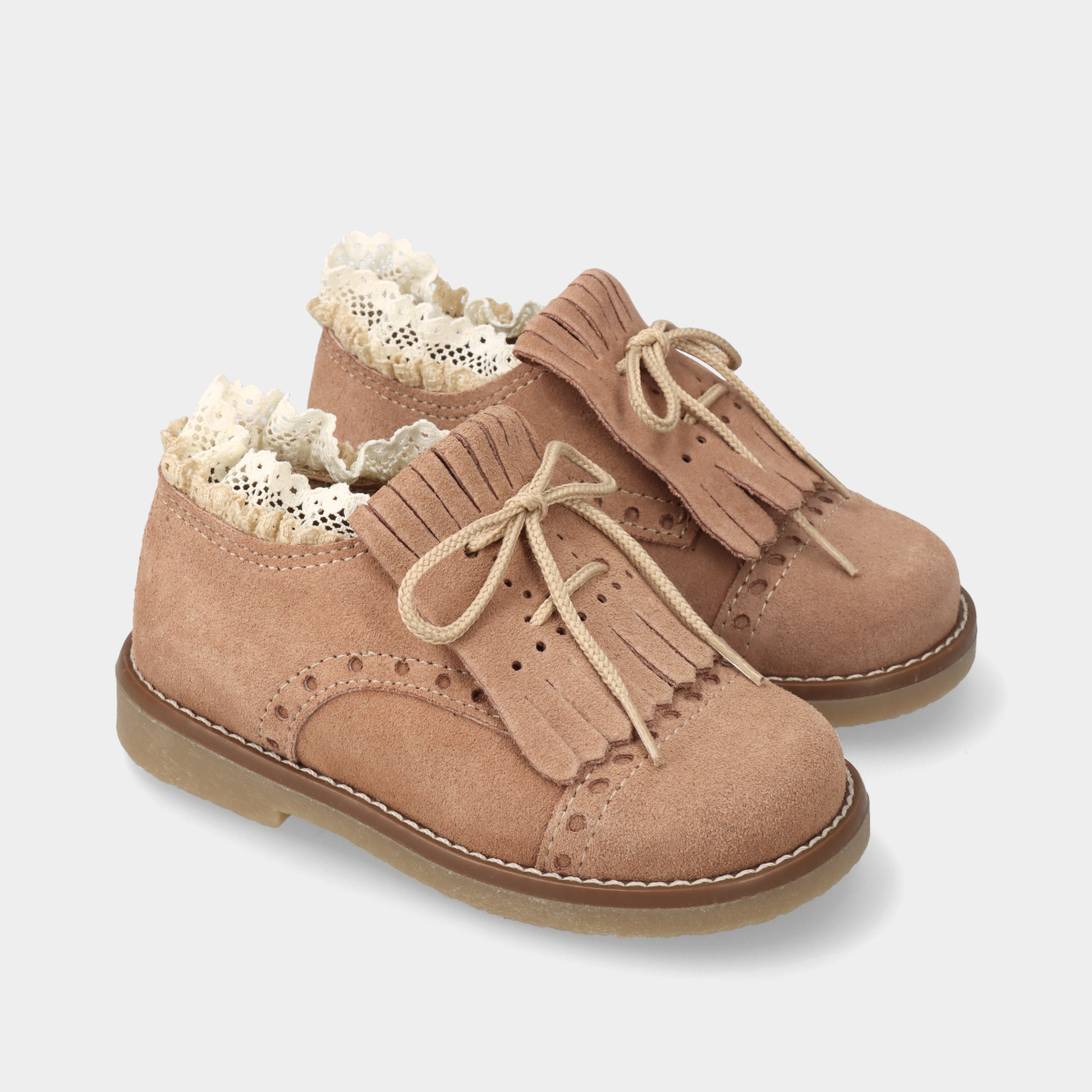O sapato carneira com pala de franjas removível na cor bege apresenta um design sofisticado!