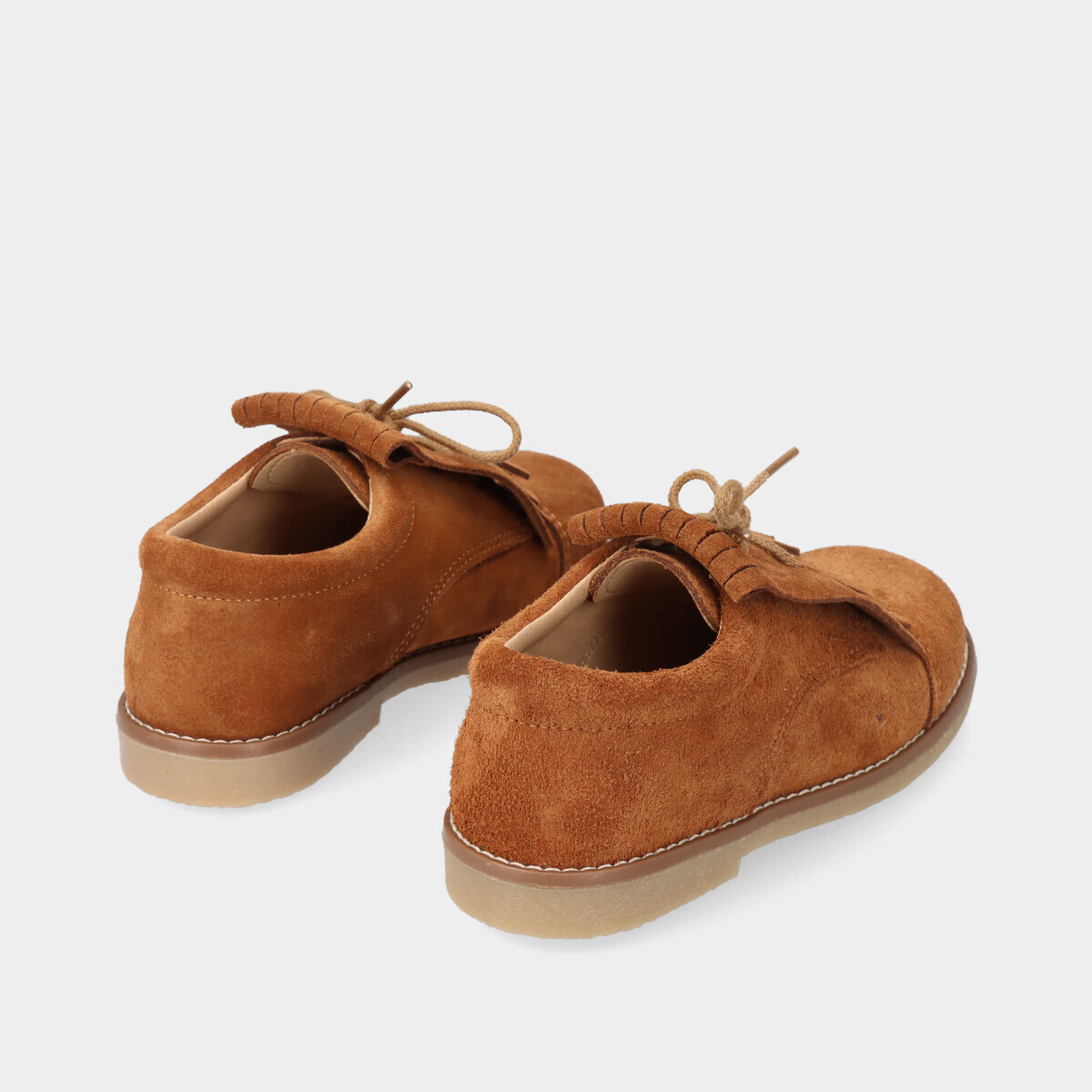 Sapato Carneiras para criança em camurça com uma pala que é removível, perfeito para alguma ocasião especial.